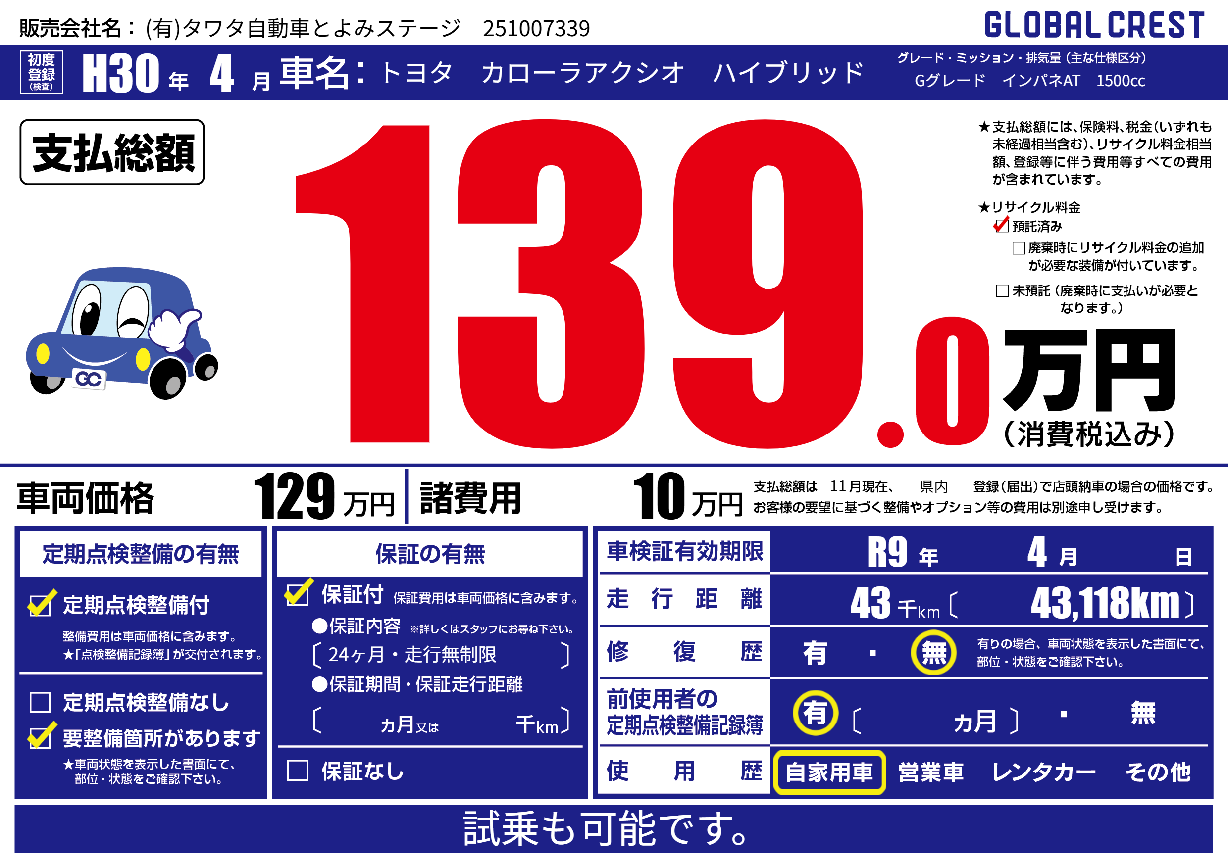 | 走行キロ | 4.3万km | ||