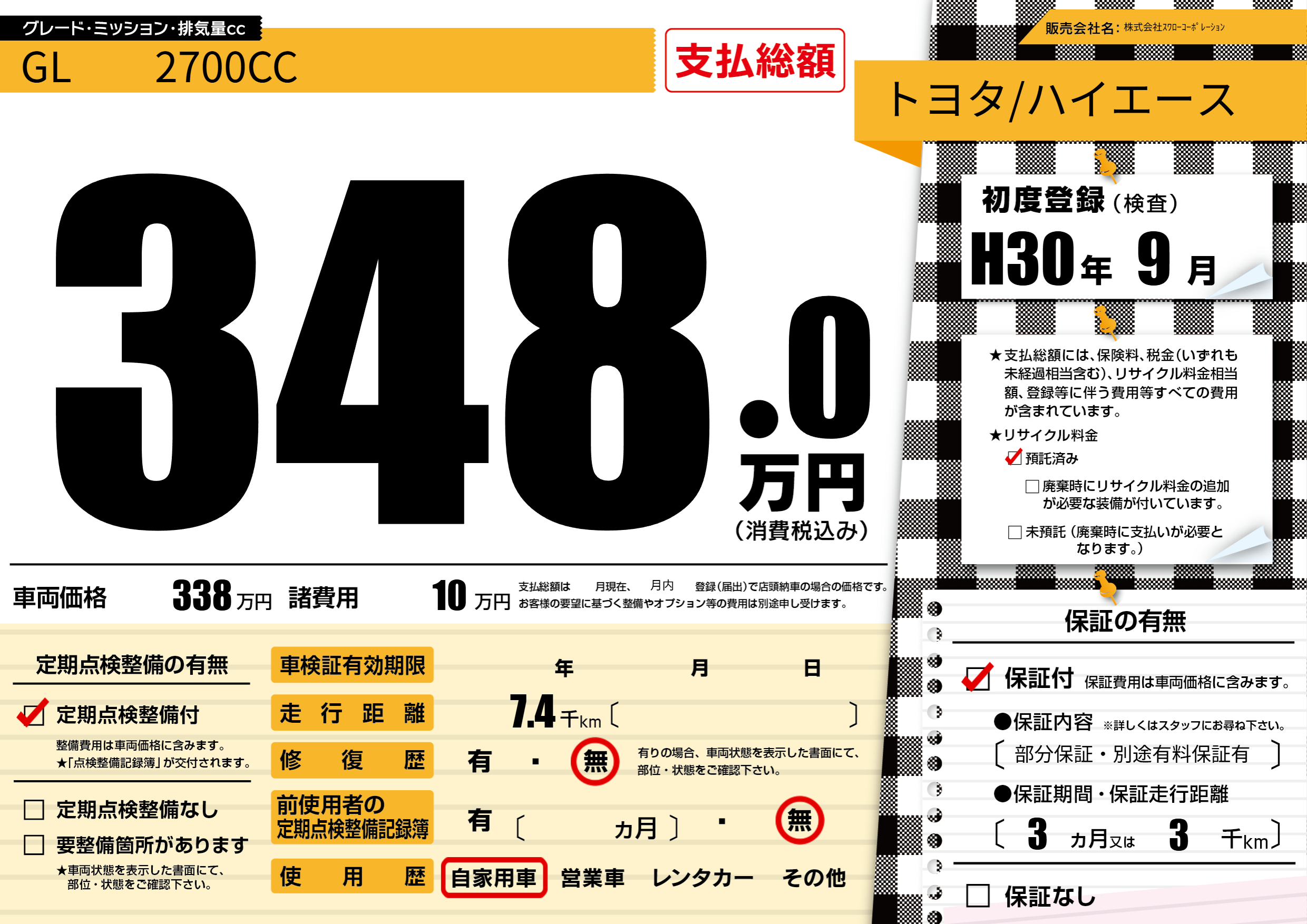 保証付き 保証内容(部分保証・別途有料保証有) 3ヶ月または(3)千kmまで |