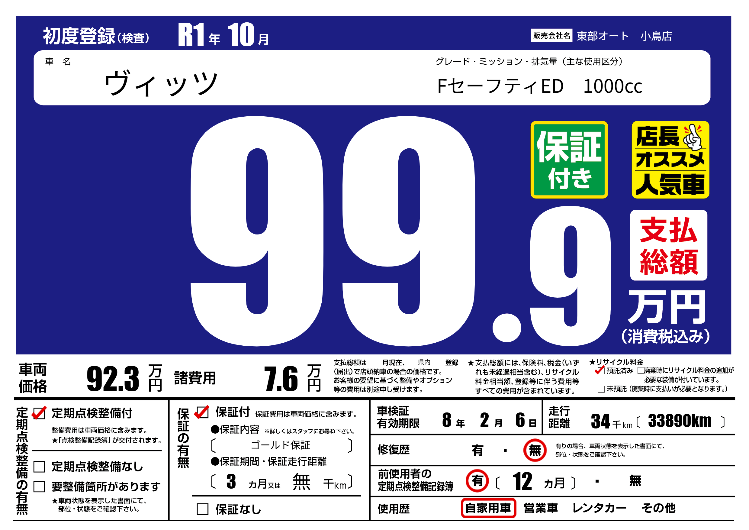 保証付き 保証内容( ゴールド保証) 3ヶ月または(無)千kmまで |