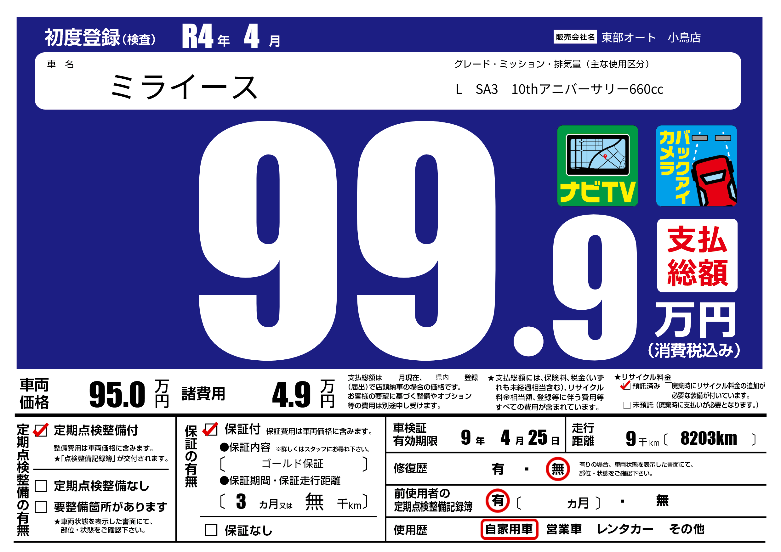 なし | 車検制限 | 9年4月25月 |