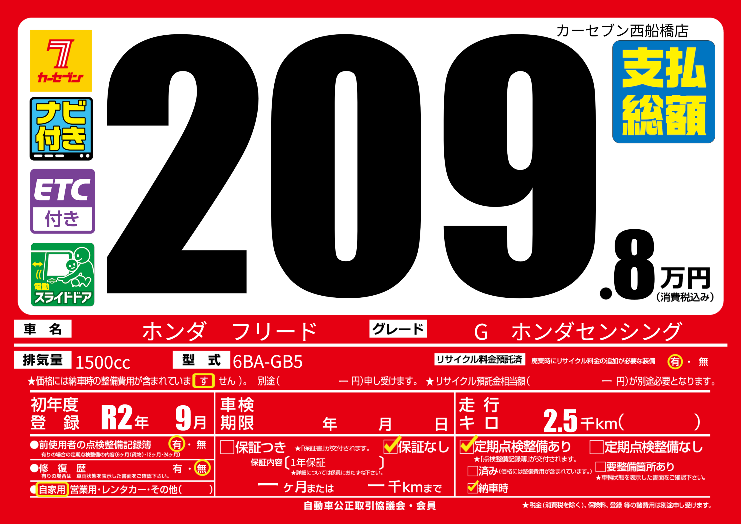 | 走行キロ | 0.2万km | 初年度登録 | R2年9月 |