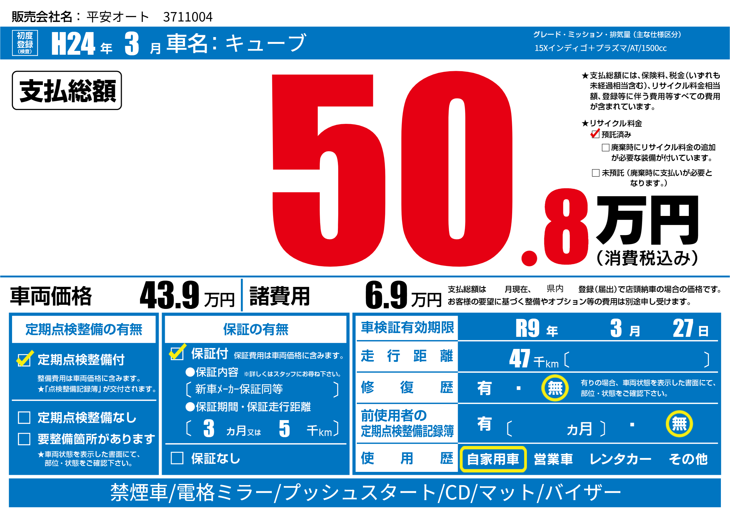 なし | 車検制限 | R9年3月27月 |