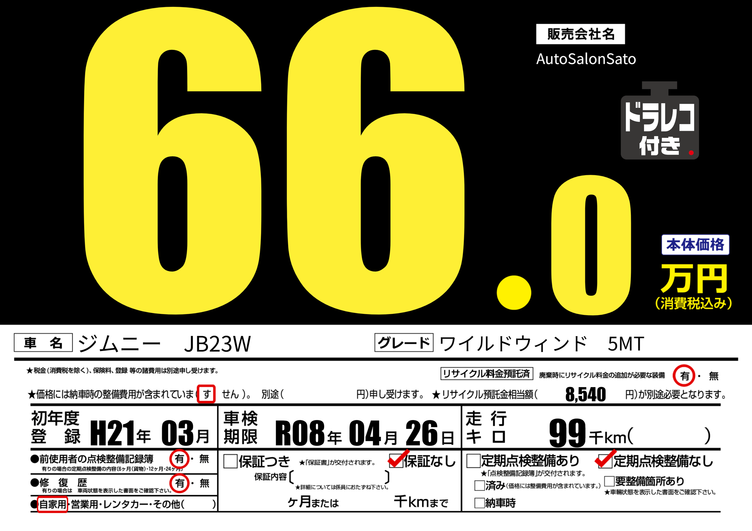 | 車検制限 | R08年 04月 26日 | ||