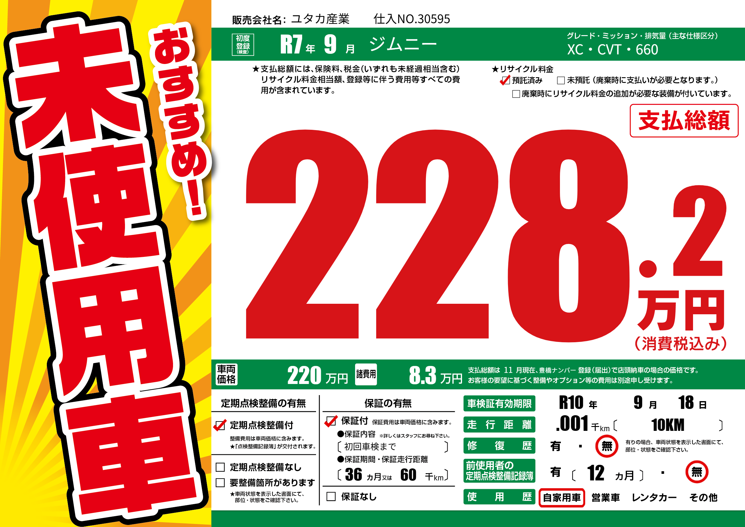 | 走行キロ | - | 初年度登録 | R7年9月 |