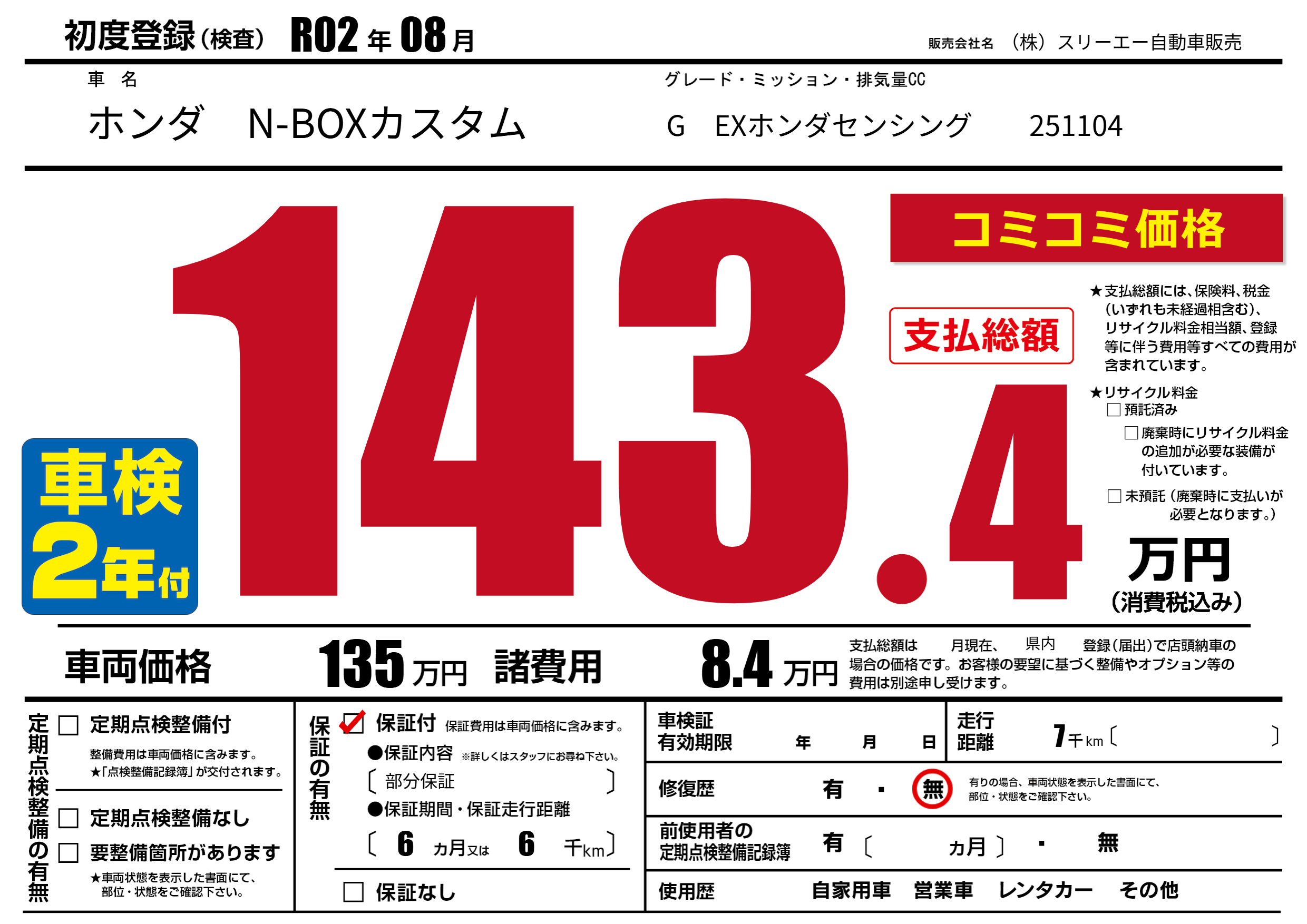 保証付き 保証内容(部分保証) 6ヶ月または(6)千kmまで |