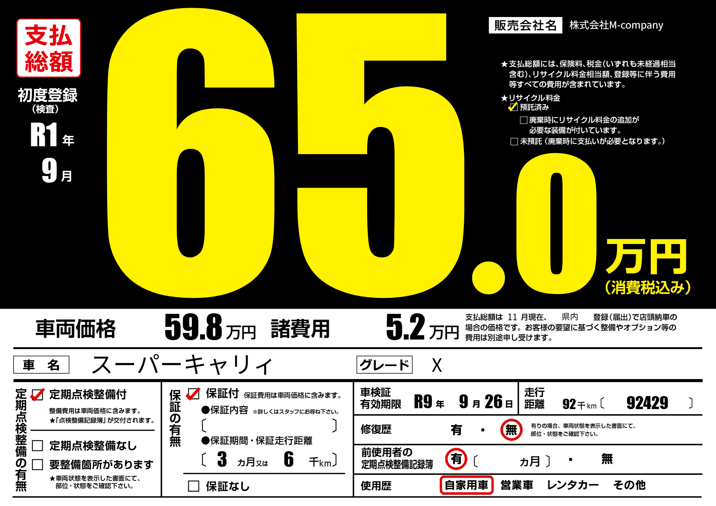 なし | 車検制限 | R9年9月26月 |