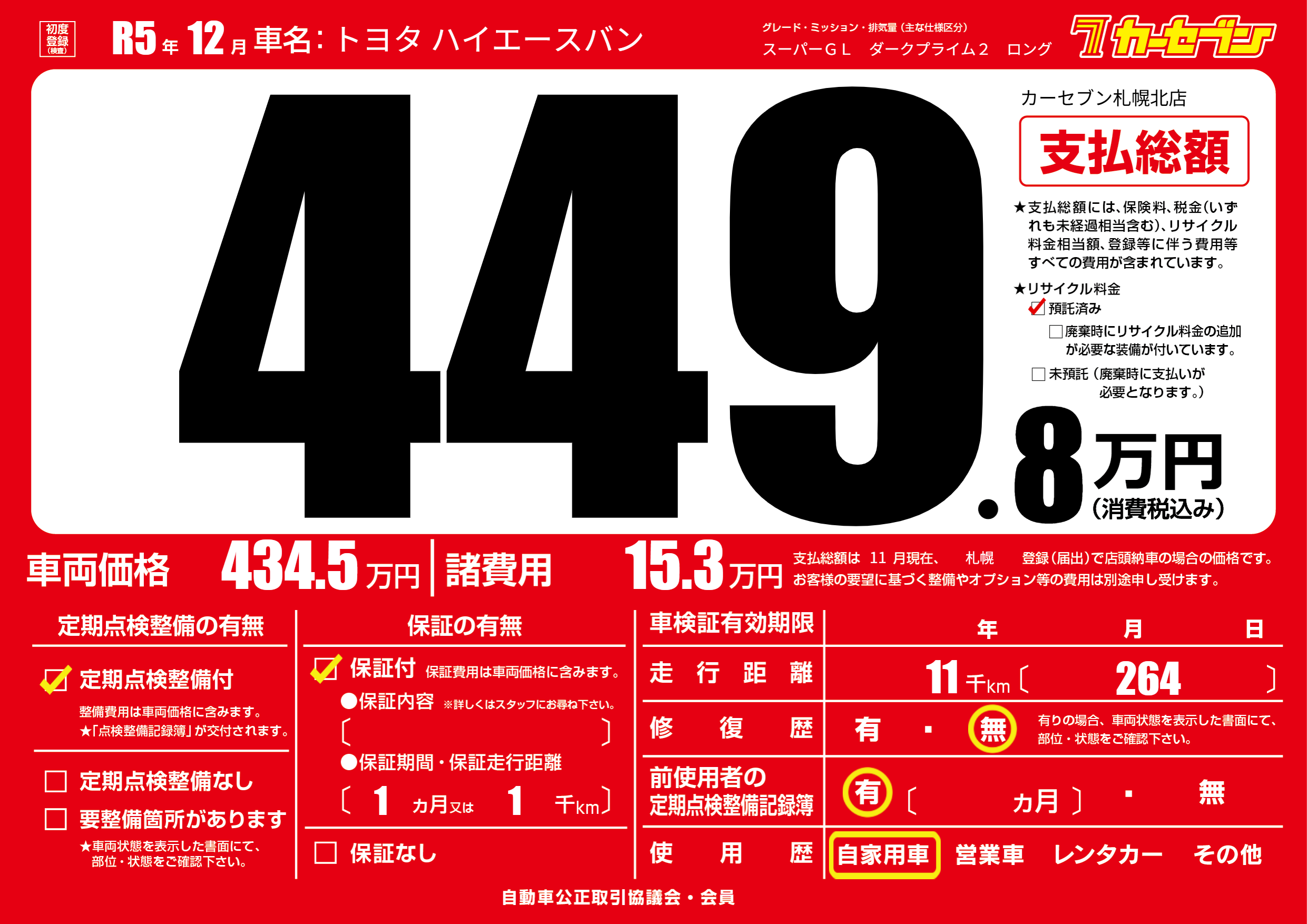 | 走行キロ | 1.1万km | 初年度登録 | R5年12月 |