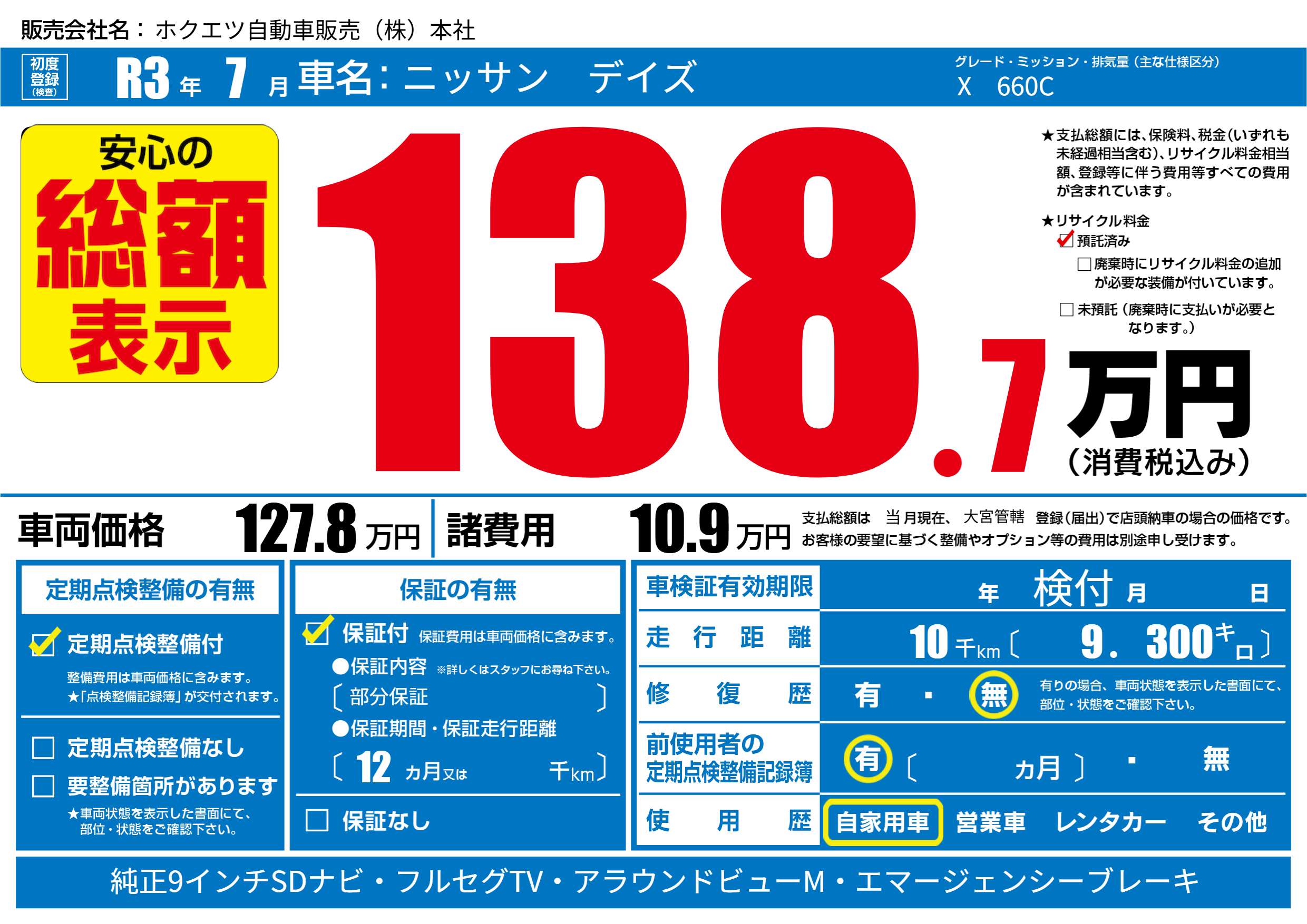 | 定期点検整備 | 定期点検整備あり | ||
