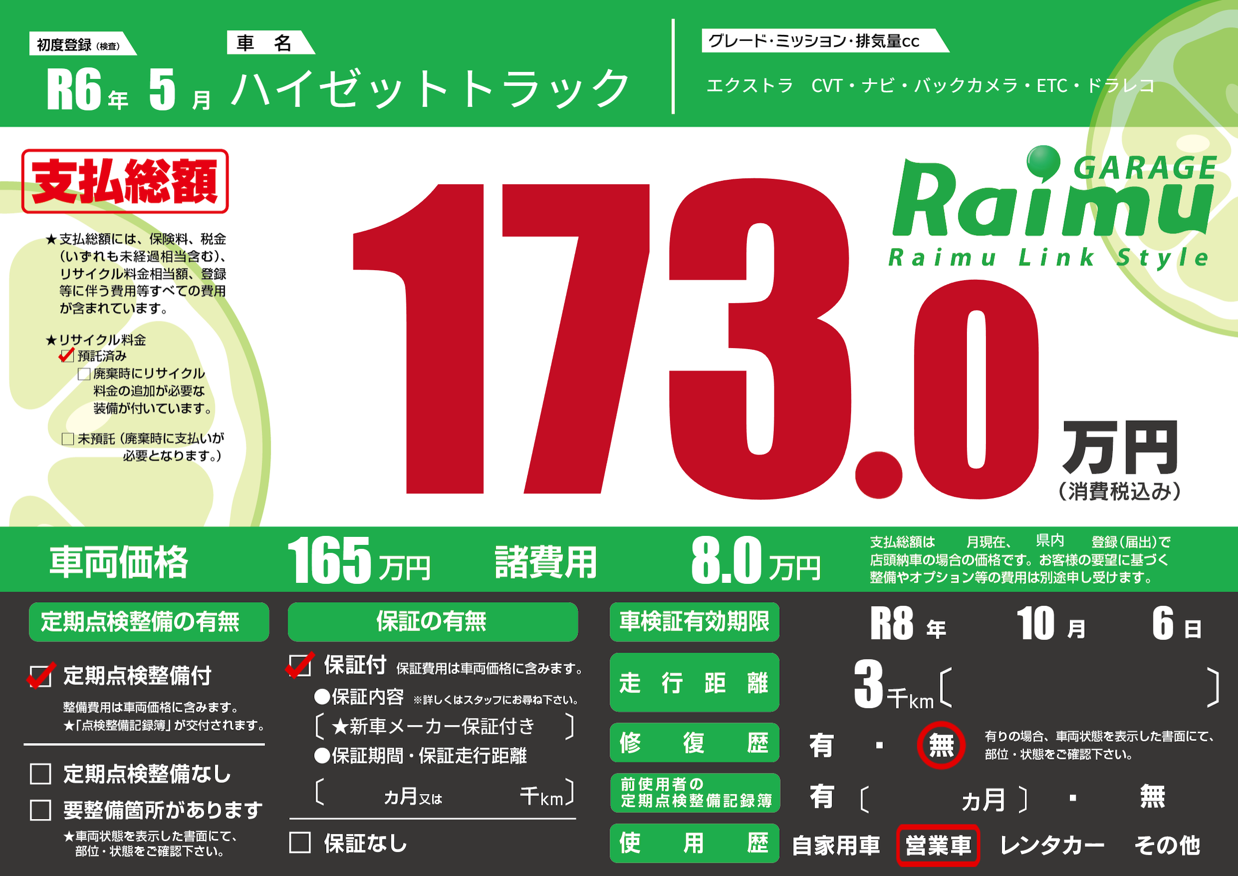 なし | 車検制限 | R8年10月6月 |