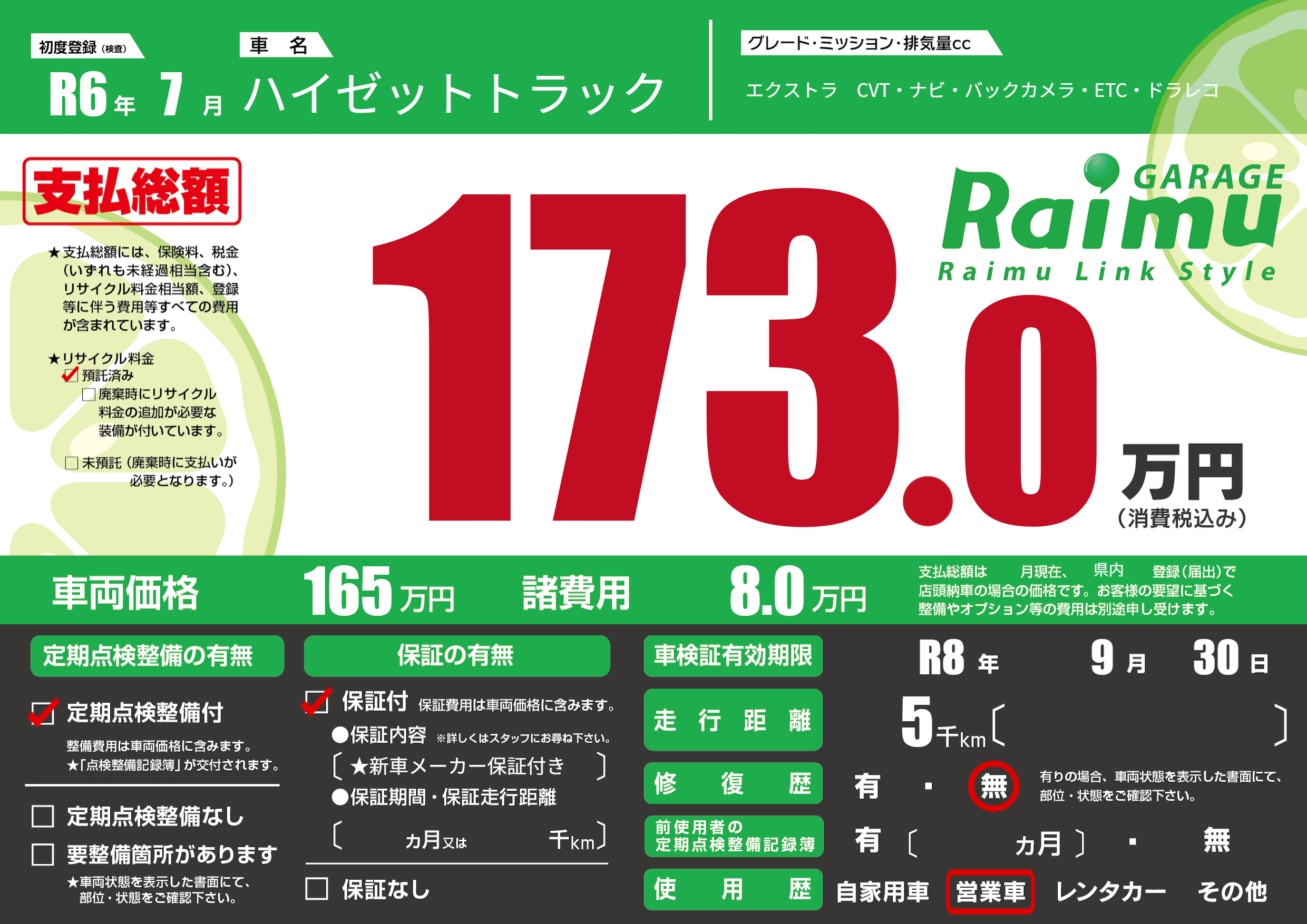 なし | 車検制限 | R8年9月30月 |