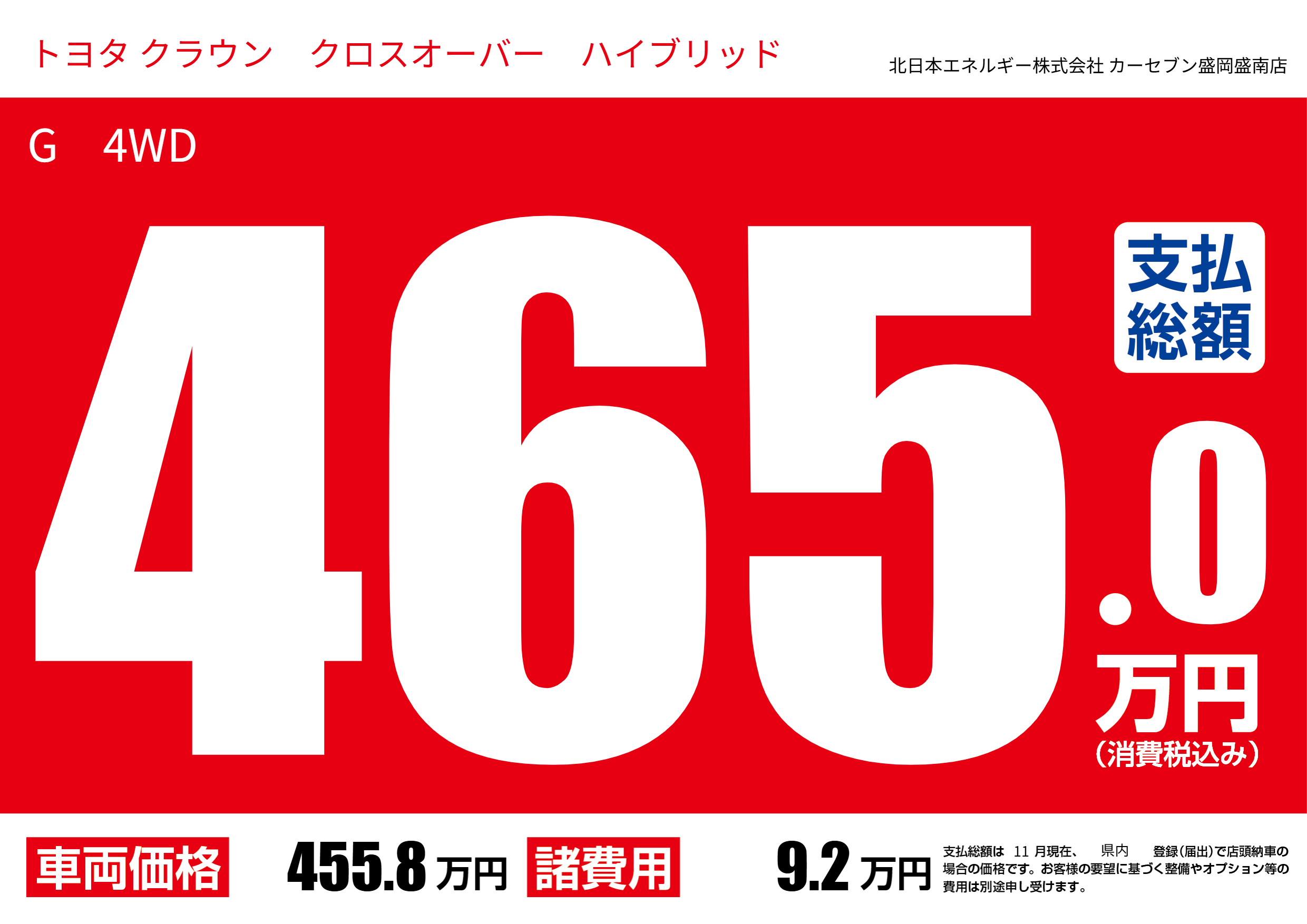 | 車名 | トヨタ クラウン クロスオーバー ハイブリッド | グレード ミッション 排気量 |