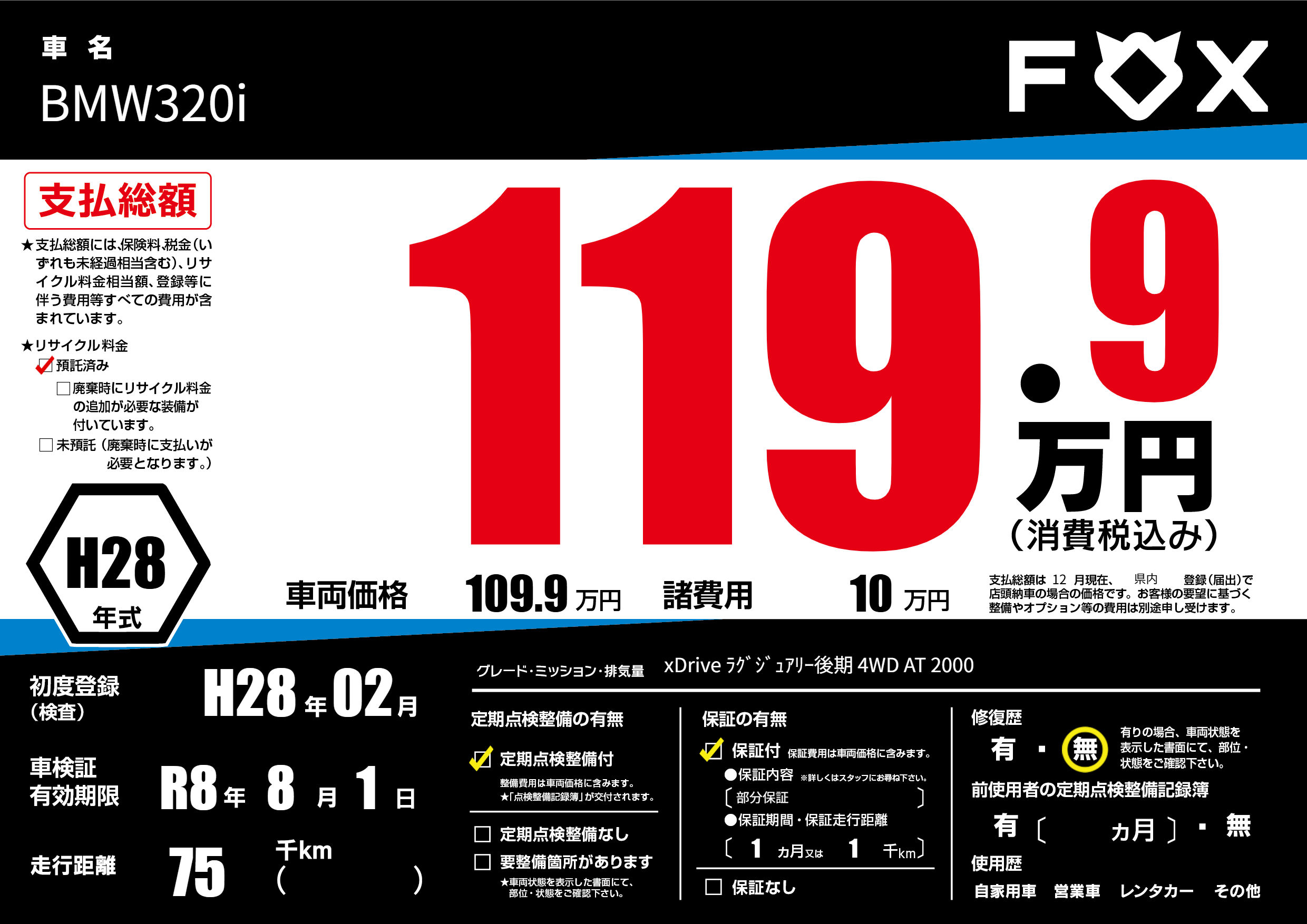 | 走行キロ | 7.5万km | ||