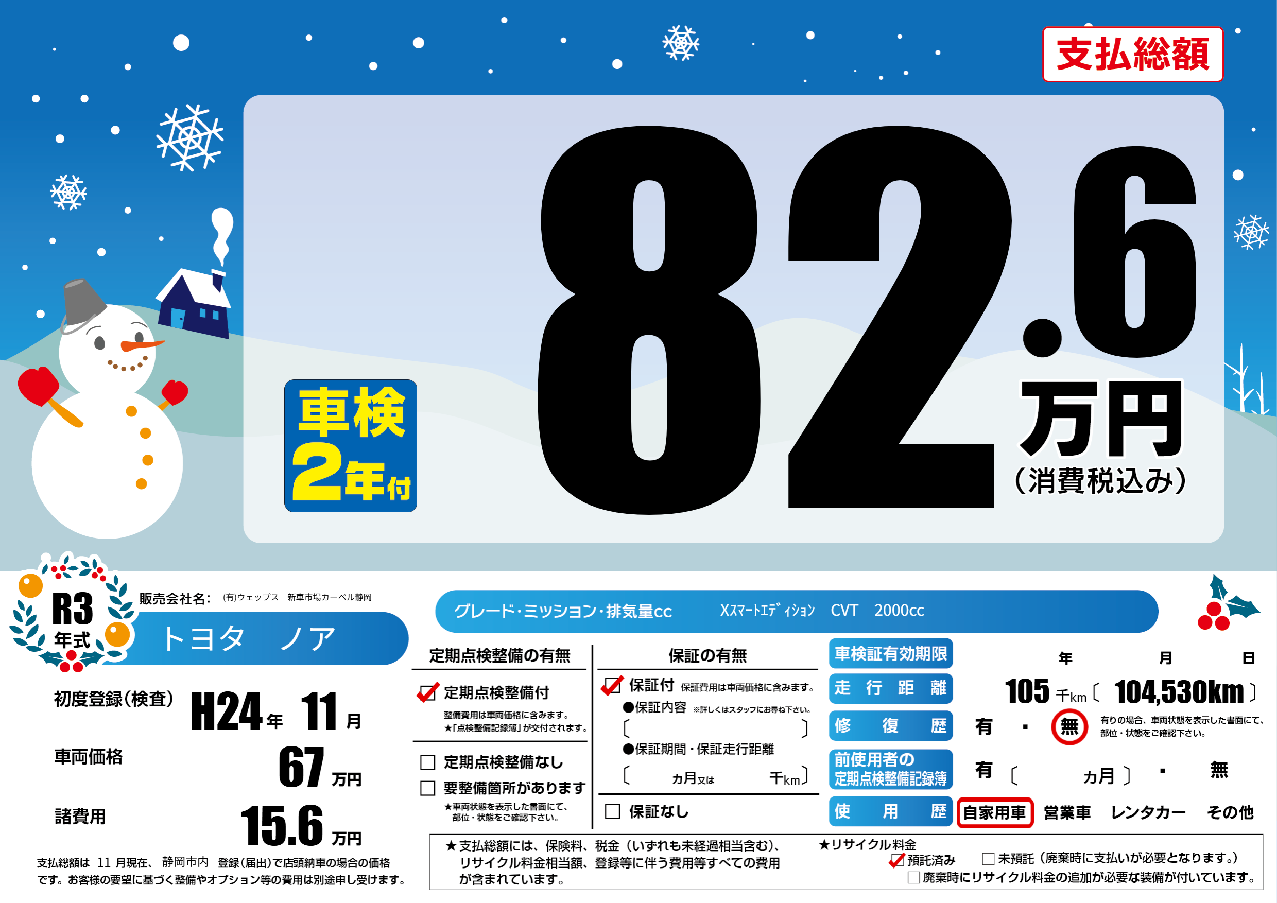 | 車名 | トヨタ ノア | グレード ミッション 排気量 |