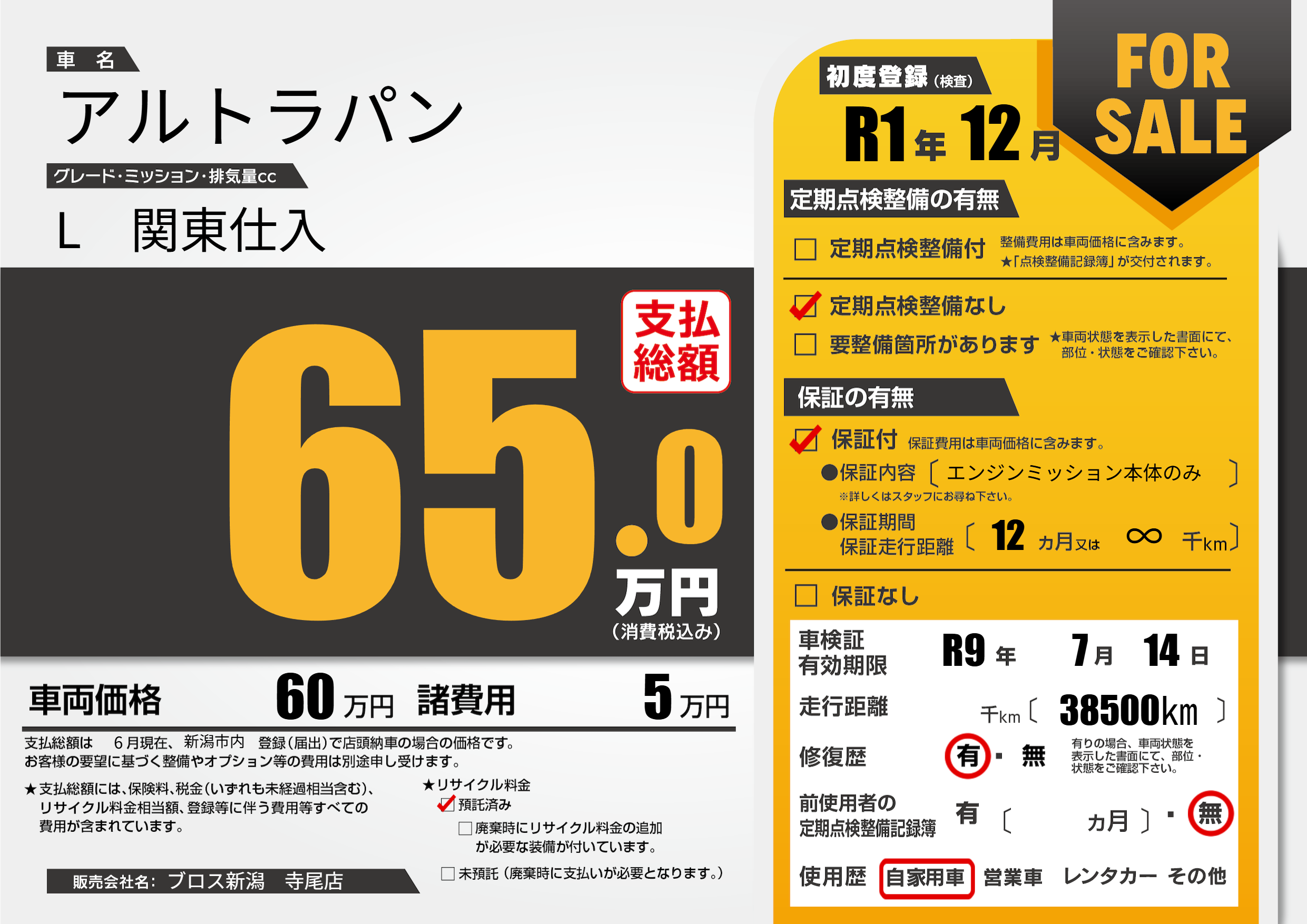 なし | 車検制限 | R9年7月14月 |