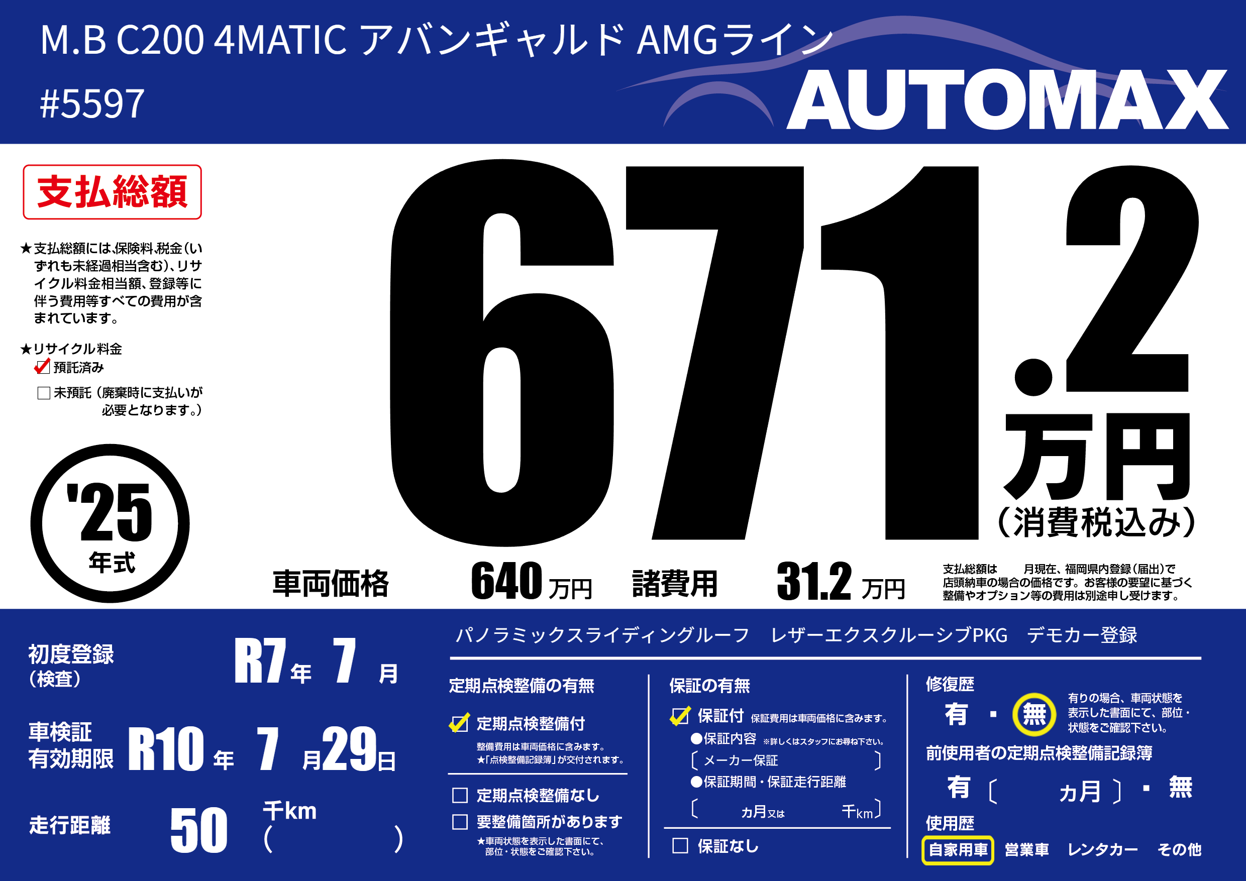 | 走行キロ | 5万km | 初年度登録 | R7年7月 |