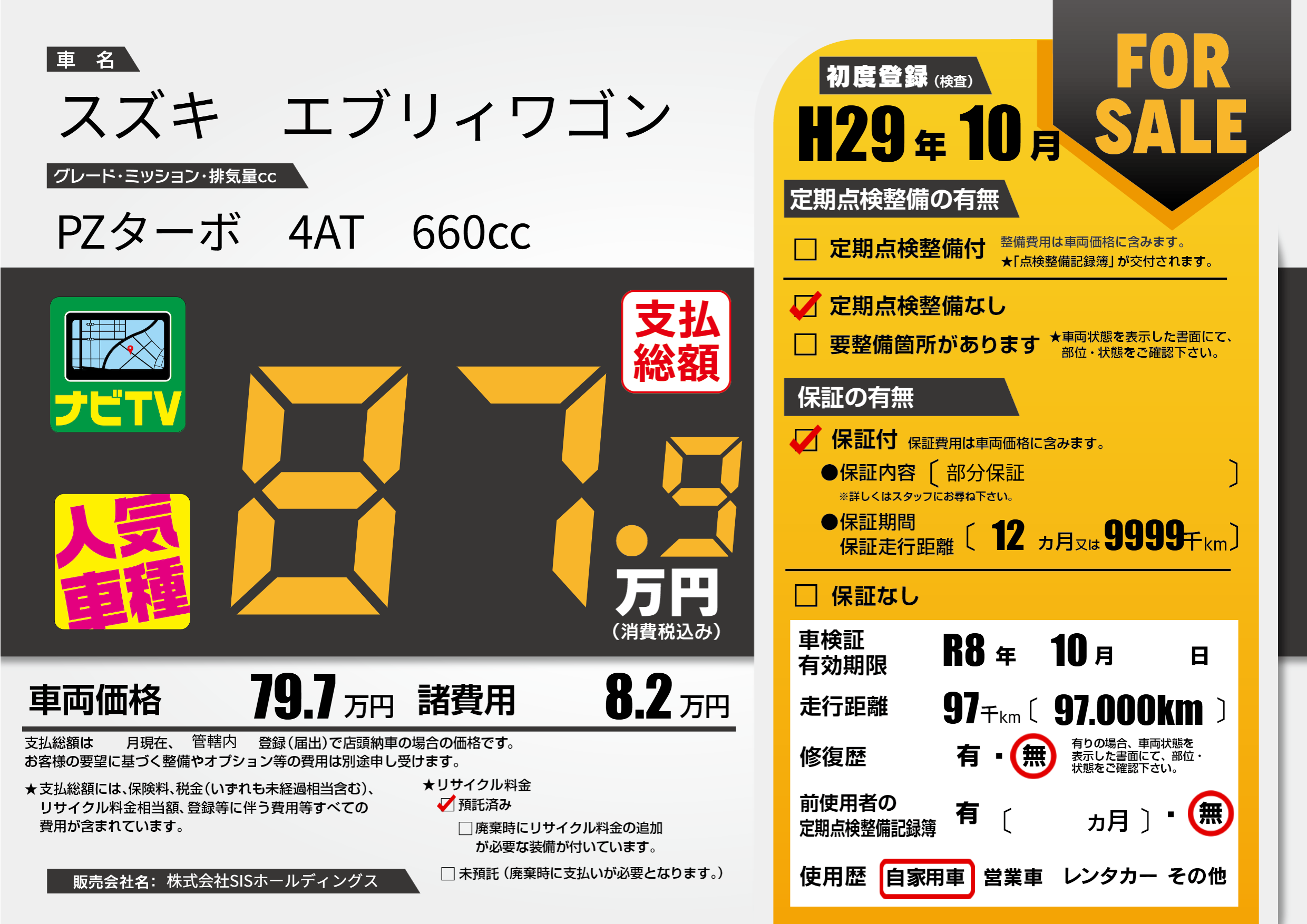 なし | 車検制限 | R8年10月---月 |