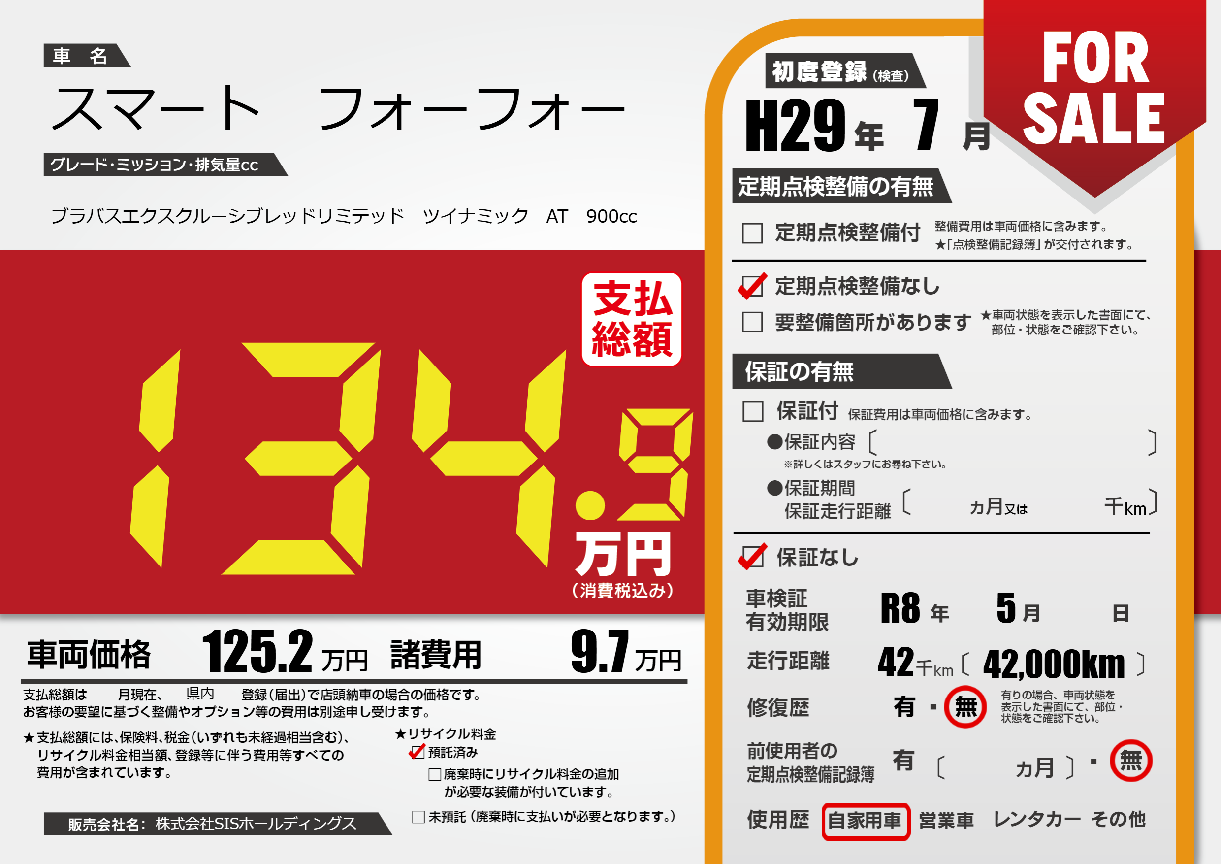なし | 車検制限 | R8年5月---月 |