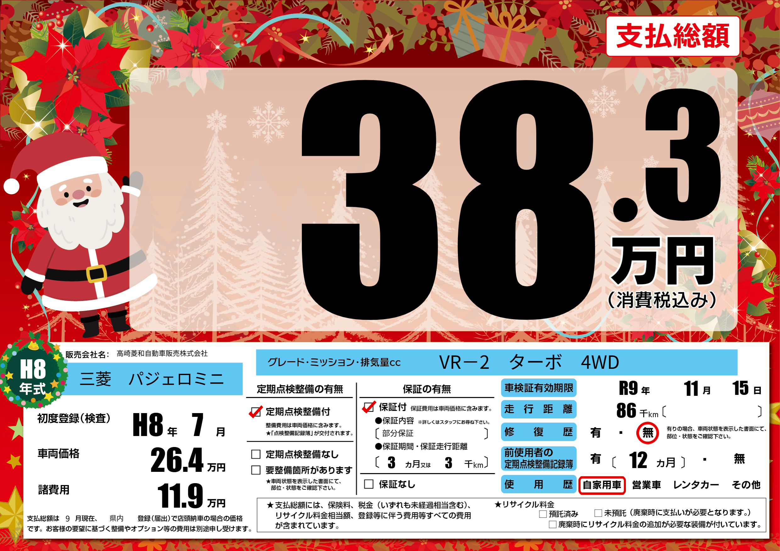 | 車名 | 三菱 パジェロミニ | グレード ミッション 排気量 |