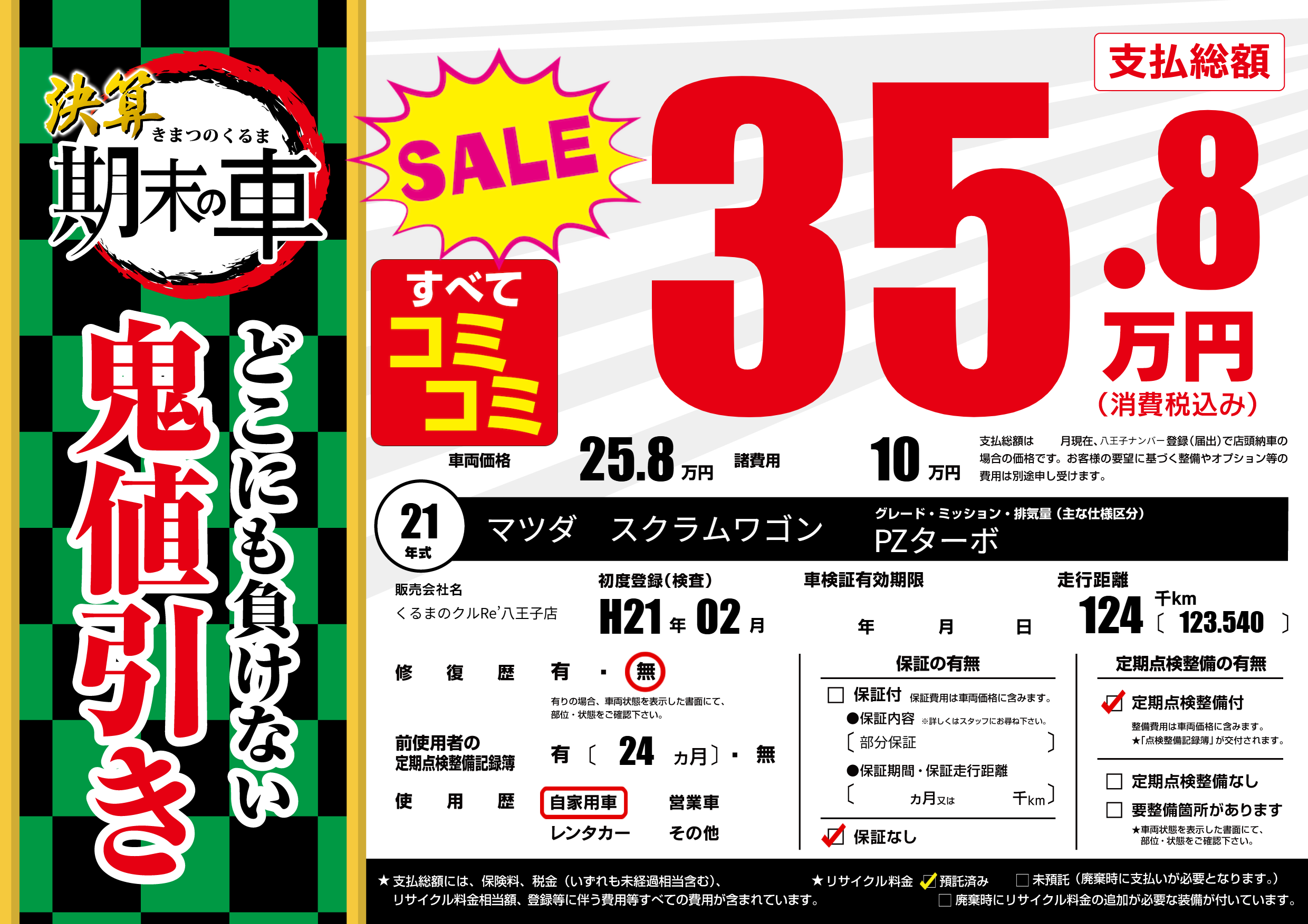 | 車名 | マツダ スクラムワゴン | グレード ミッション 排気量 |