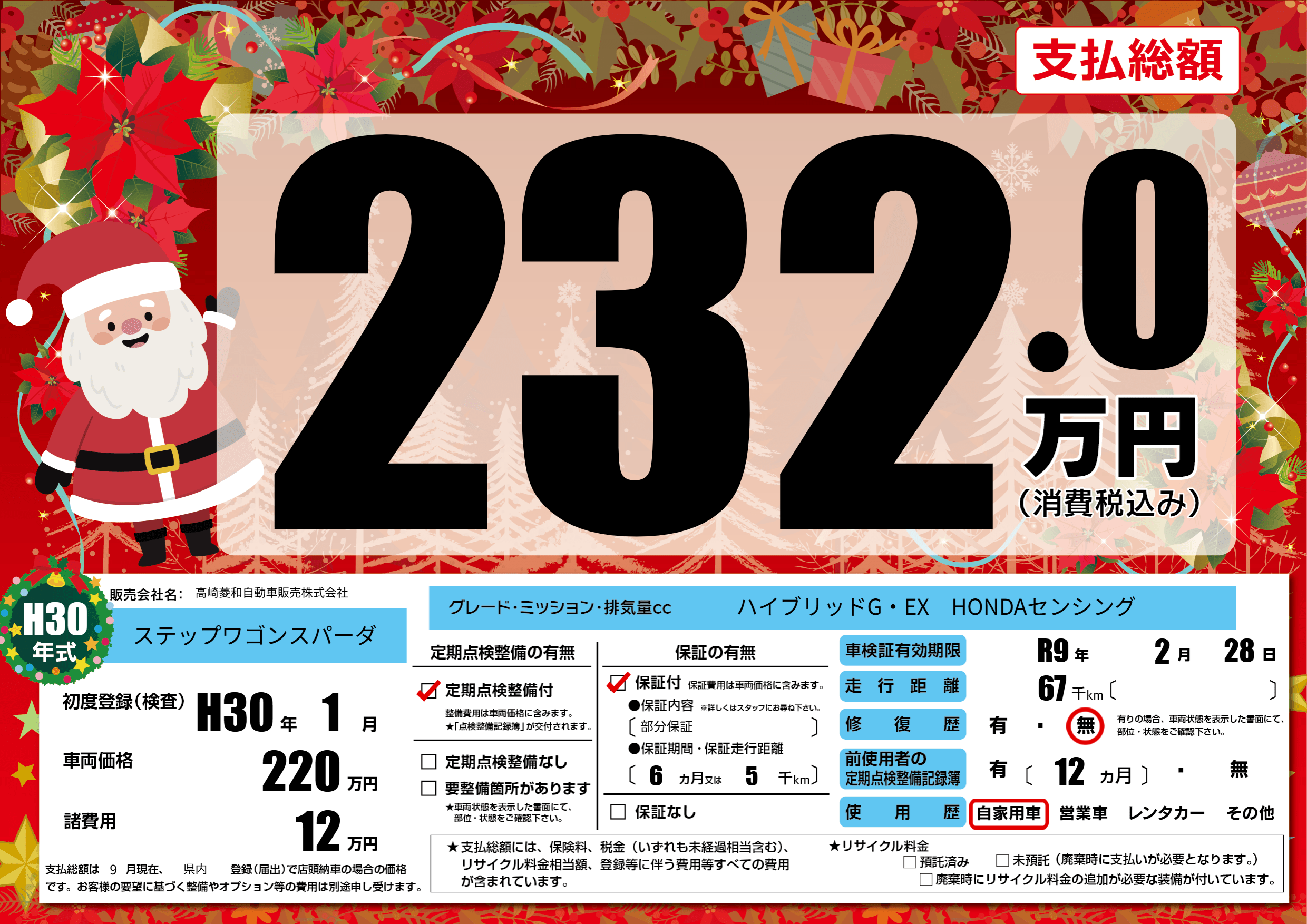 | 車名 | ステップワゴンスパーダ | グレード ミッション 排気量 |