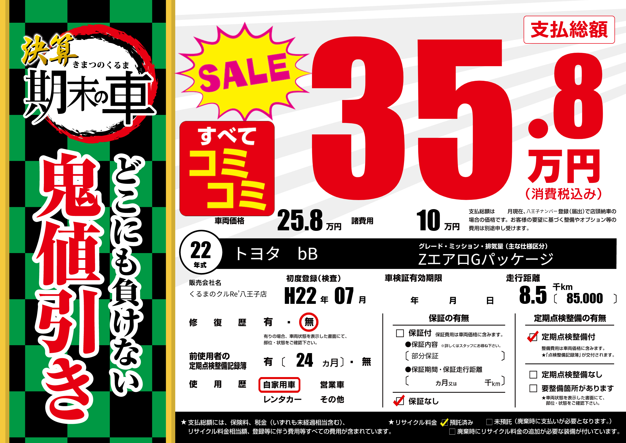 | 車名 | トヨタ bB | グレード ミッション 排気量 |