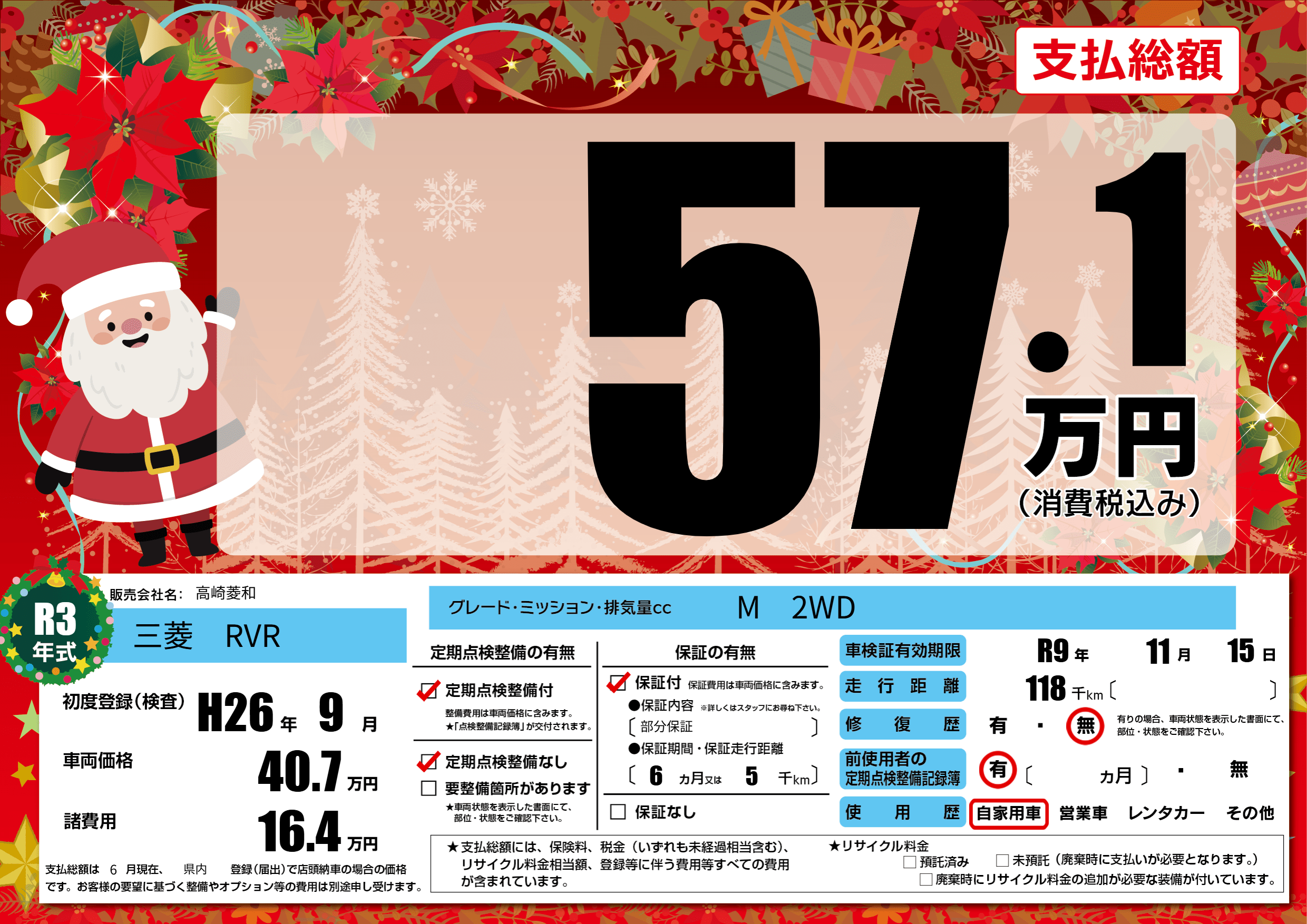 | 車名 | 三菱 RVR | グレード ミッション 排気量 |