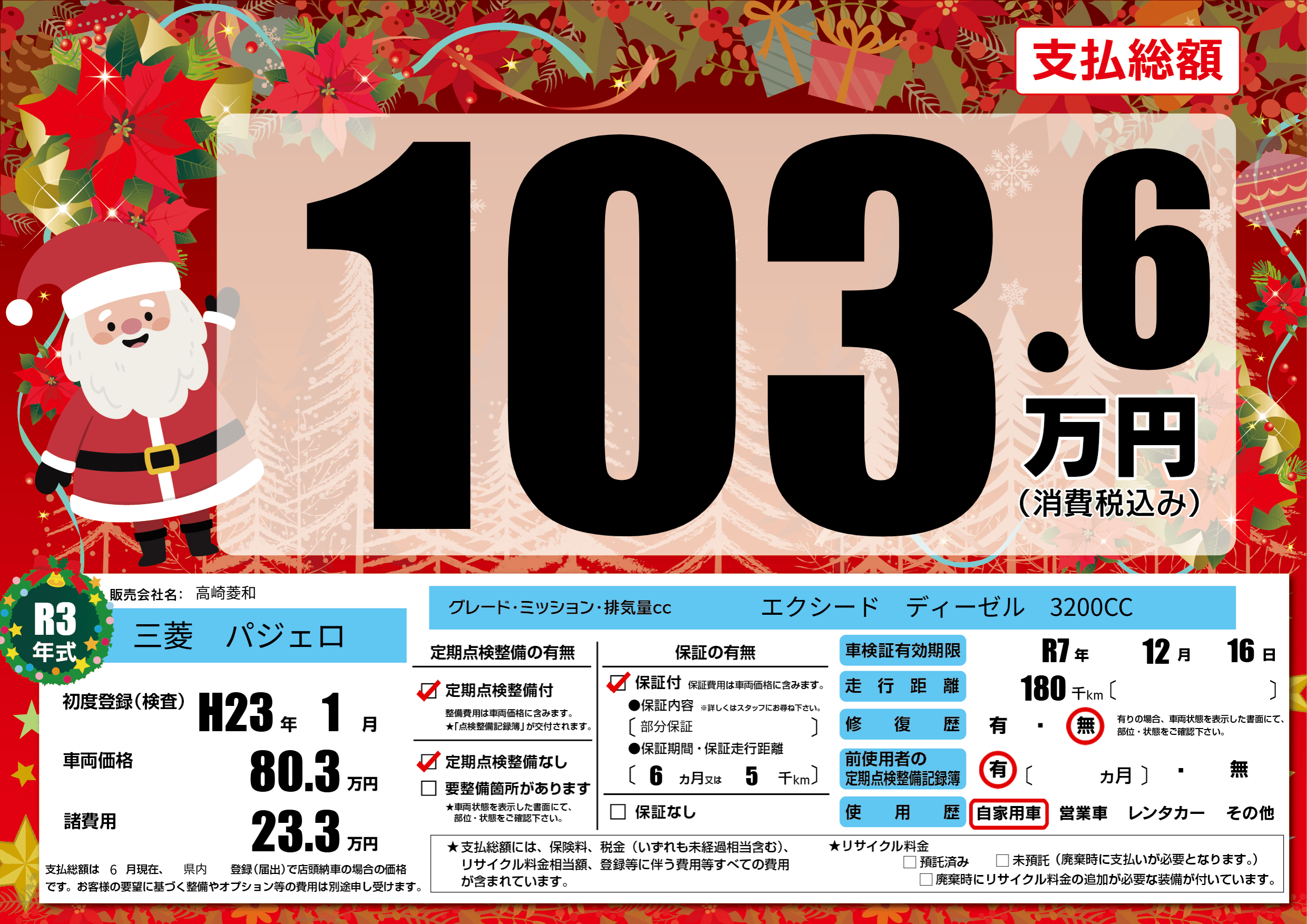 | 車名 | 三菱 パジェロ | グレード ミッション 排気量 |