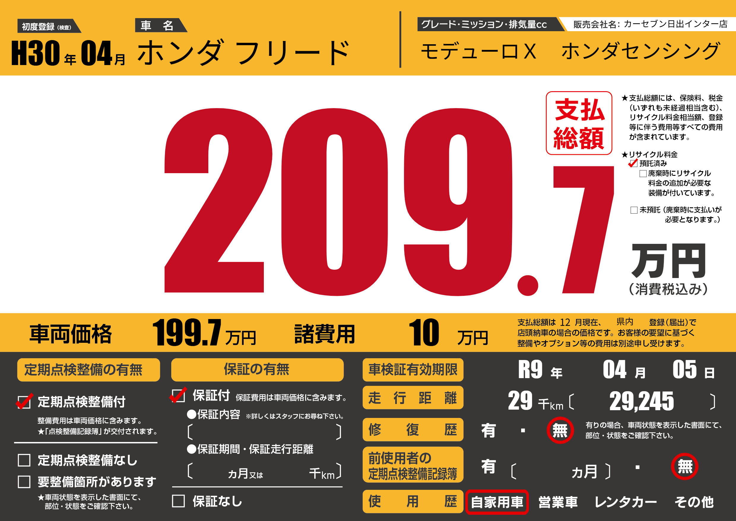| 走行キロ | 2.9万km | 初年度登録 | H30年04月 |
