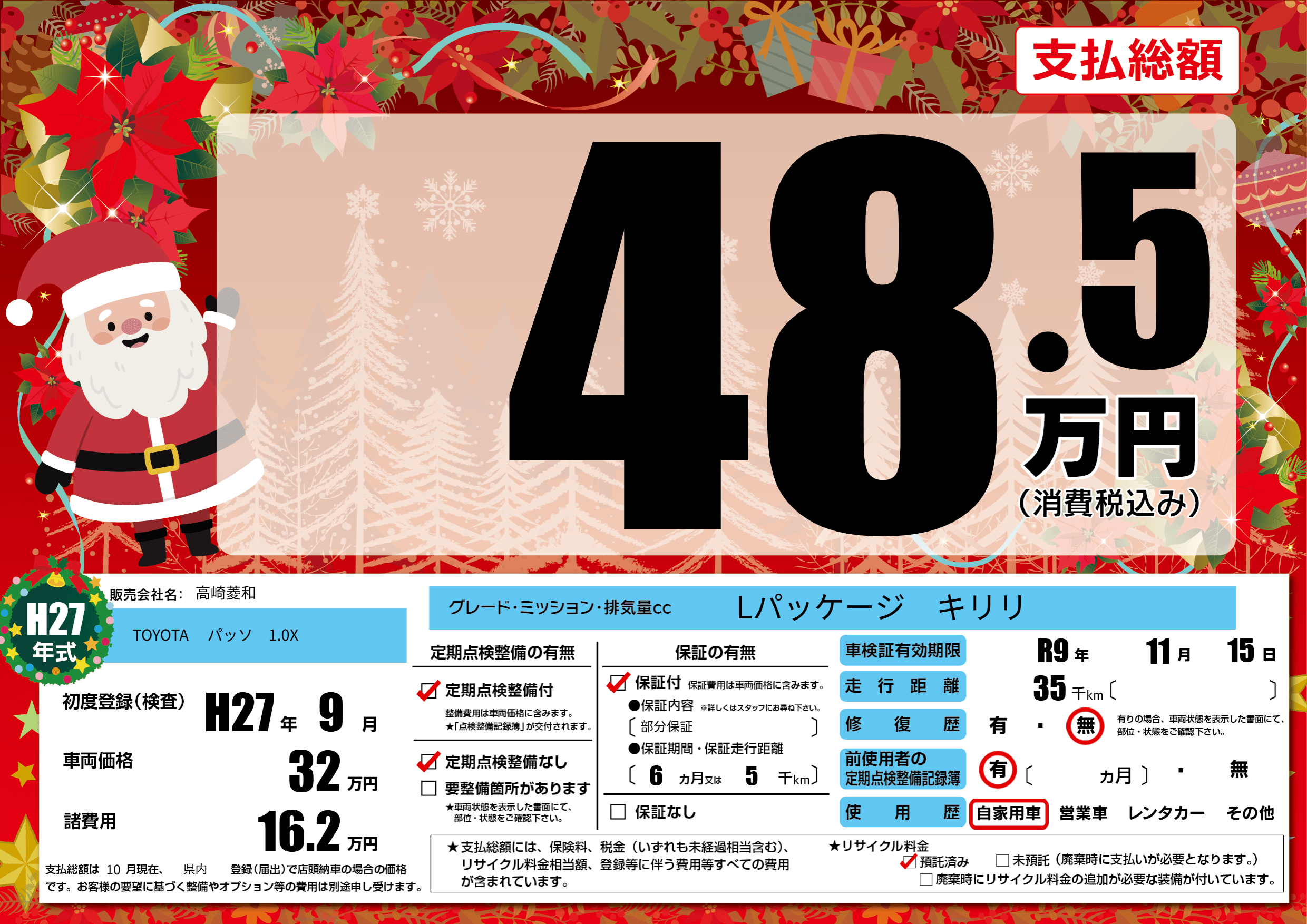 | 初年度登録 | H27年9月 | ||