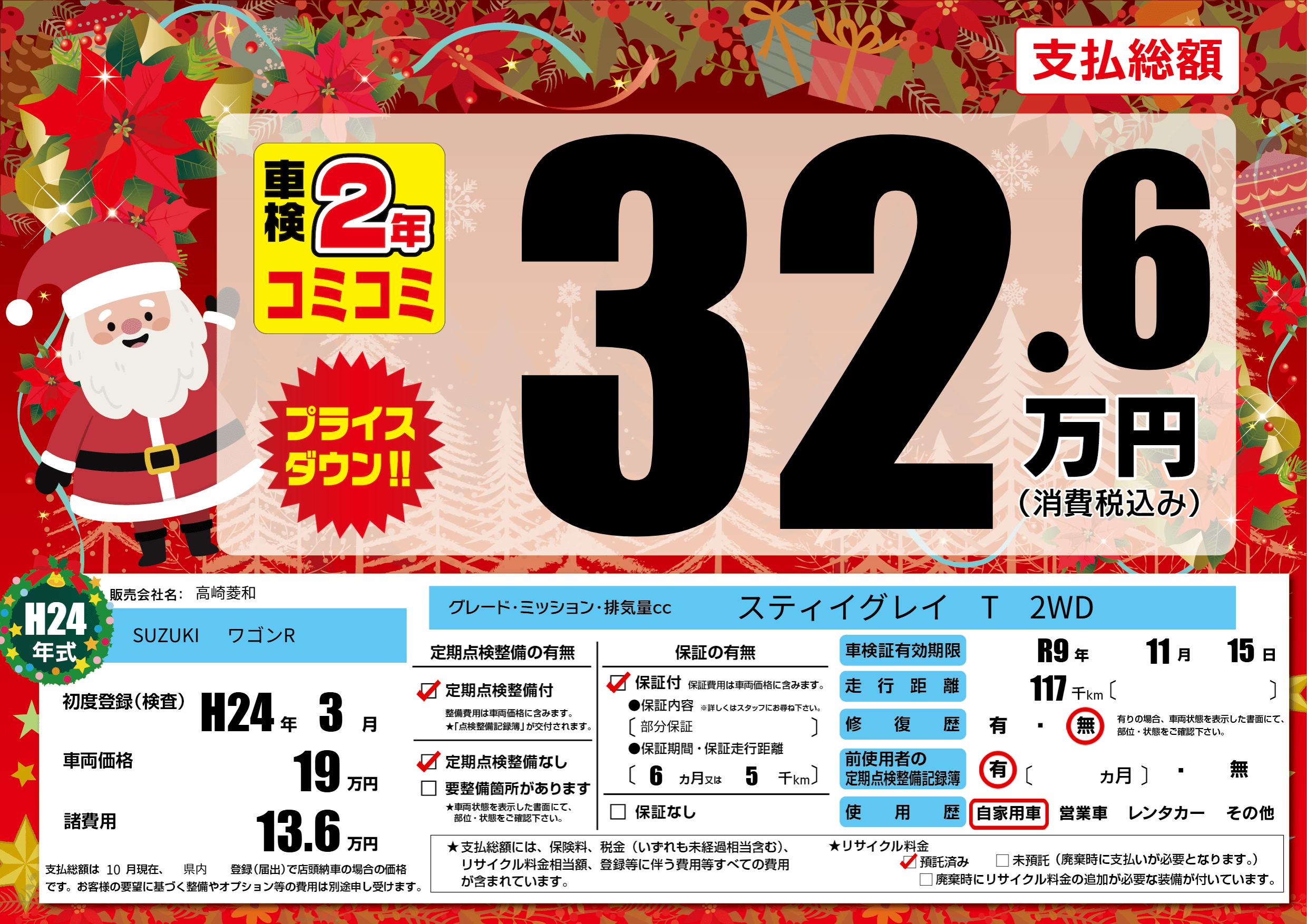 | 走行キロ | 11.7万km | 初年度登録 | H24年3月 |