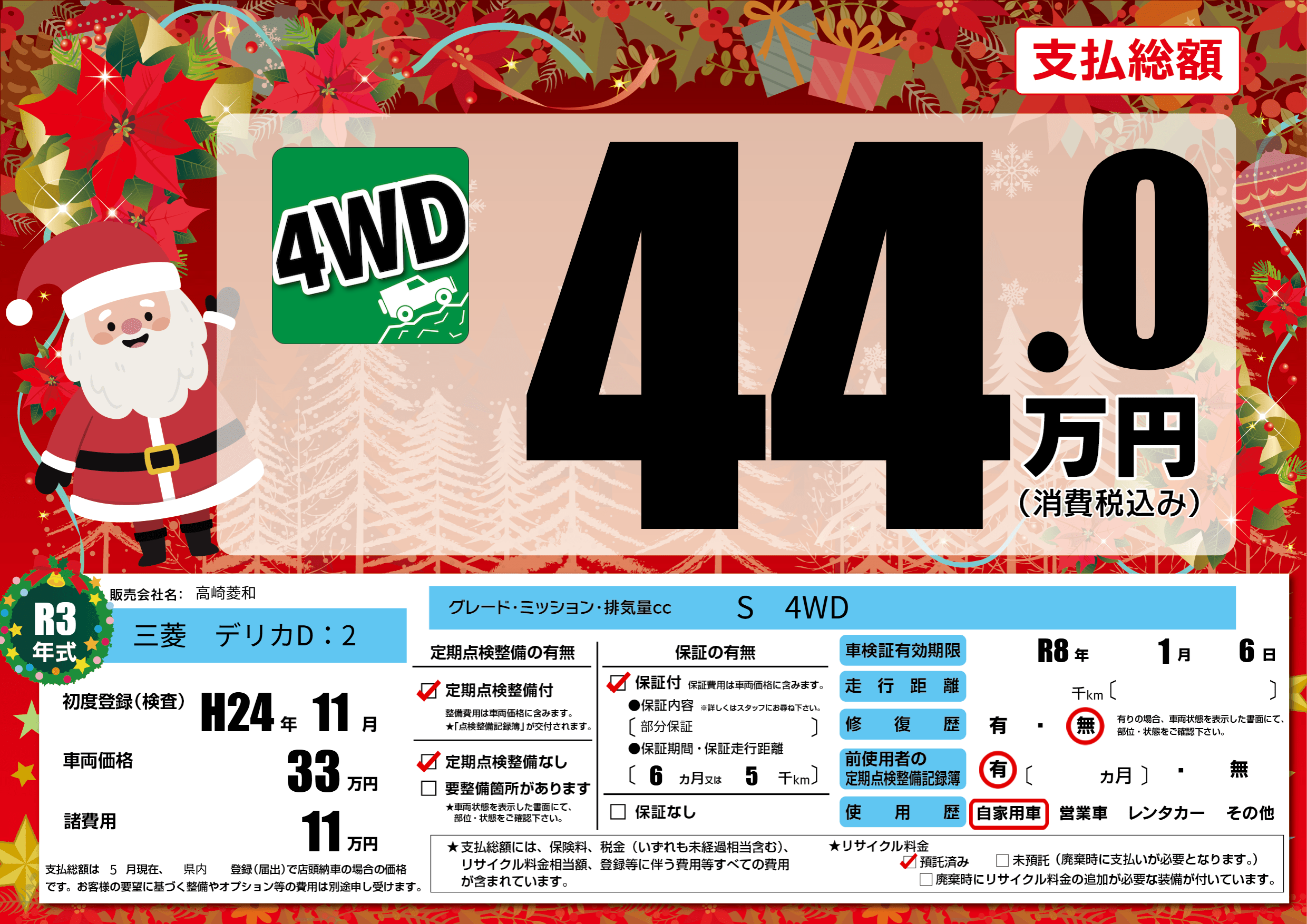 | 車名 | 三菱 デリカD:2 | グレード ミッション 排気量 |