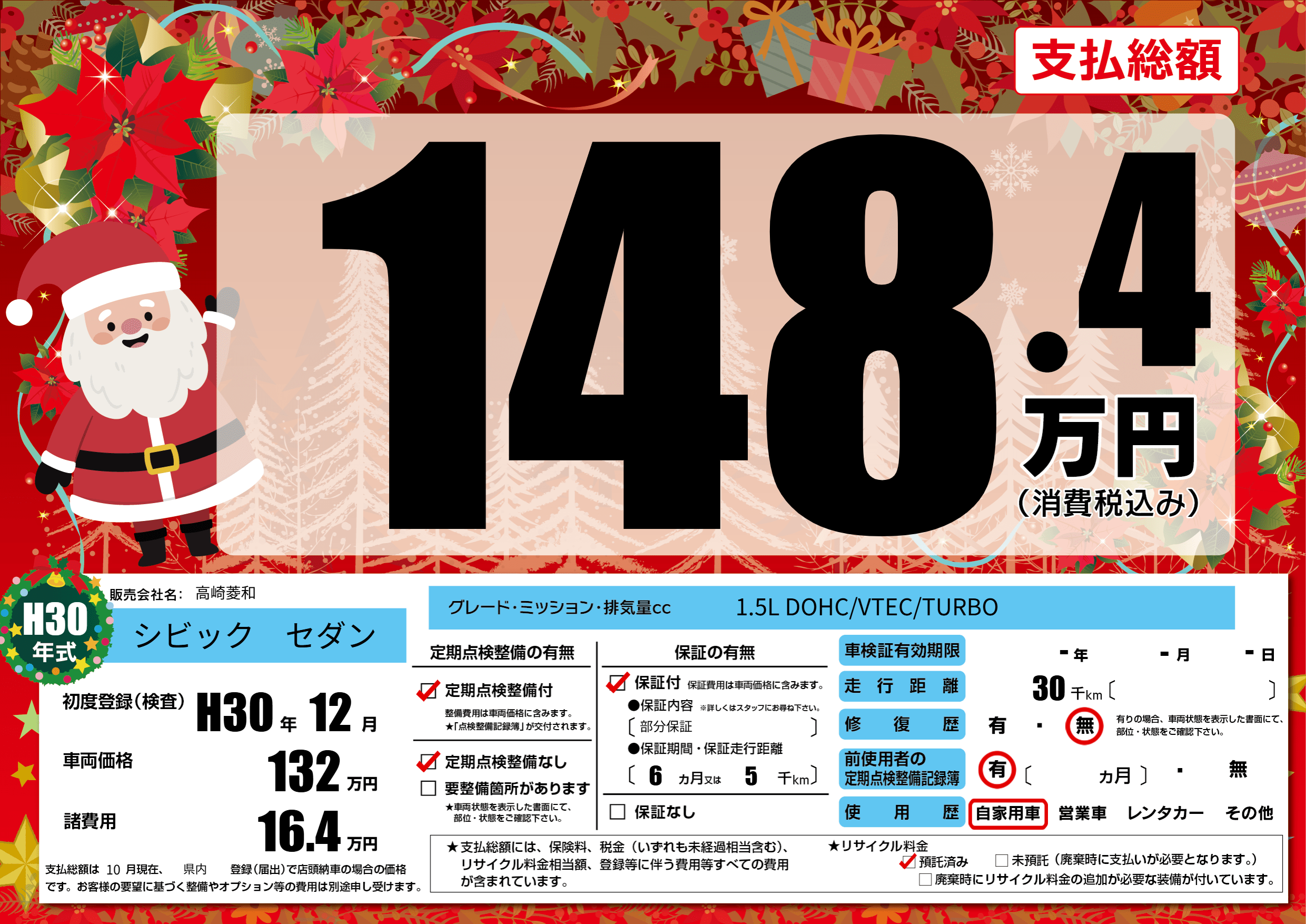 | 走行キロ | 3万km | 初年度登録 | H30年12月 |