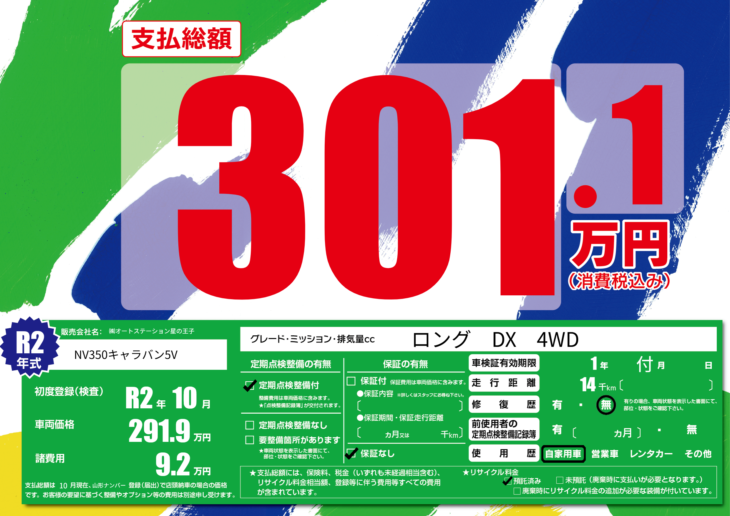 | 車名 | NV350キャラバン5V | グレード ミッション 排気量 |