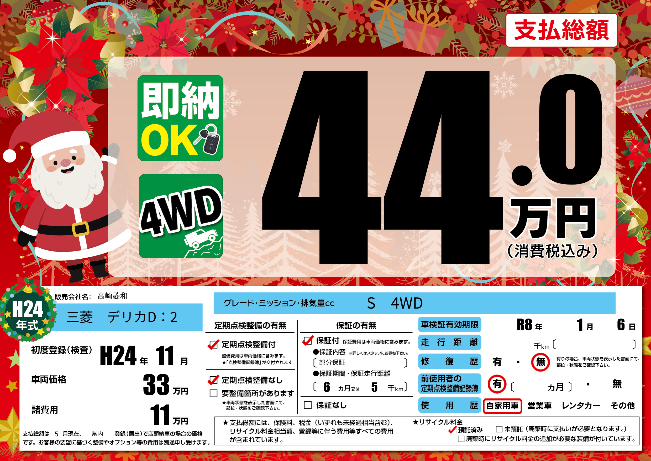 | 車名 | 三菱 デリカD:2 | グレード ミッション 排気量 |