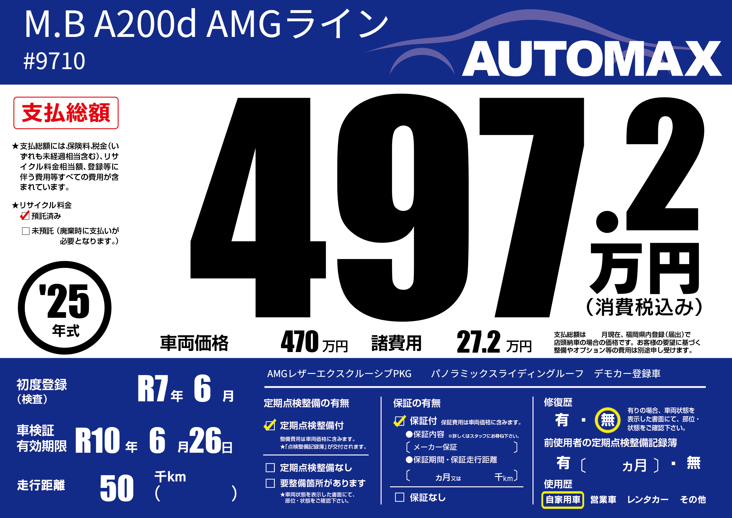 | 走行キロ | 5万km | 初年度登録 | R7年6月 |