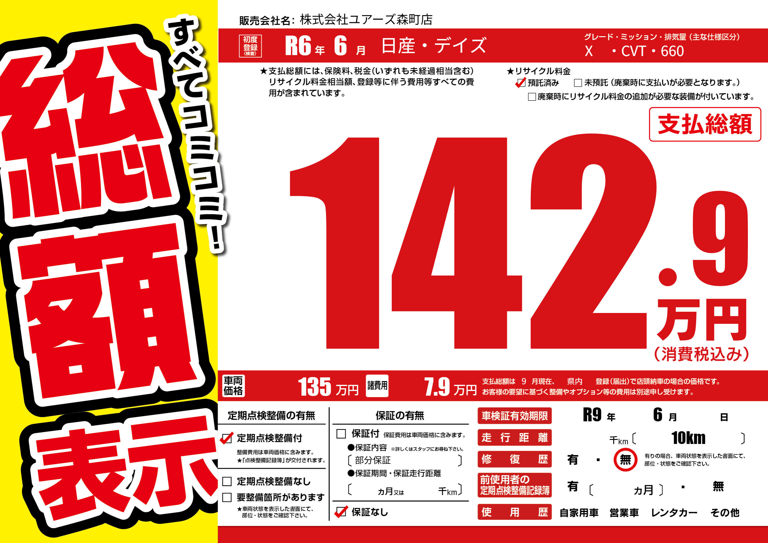 なし | 車検制限 | R9年6月---月 |