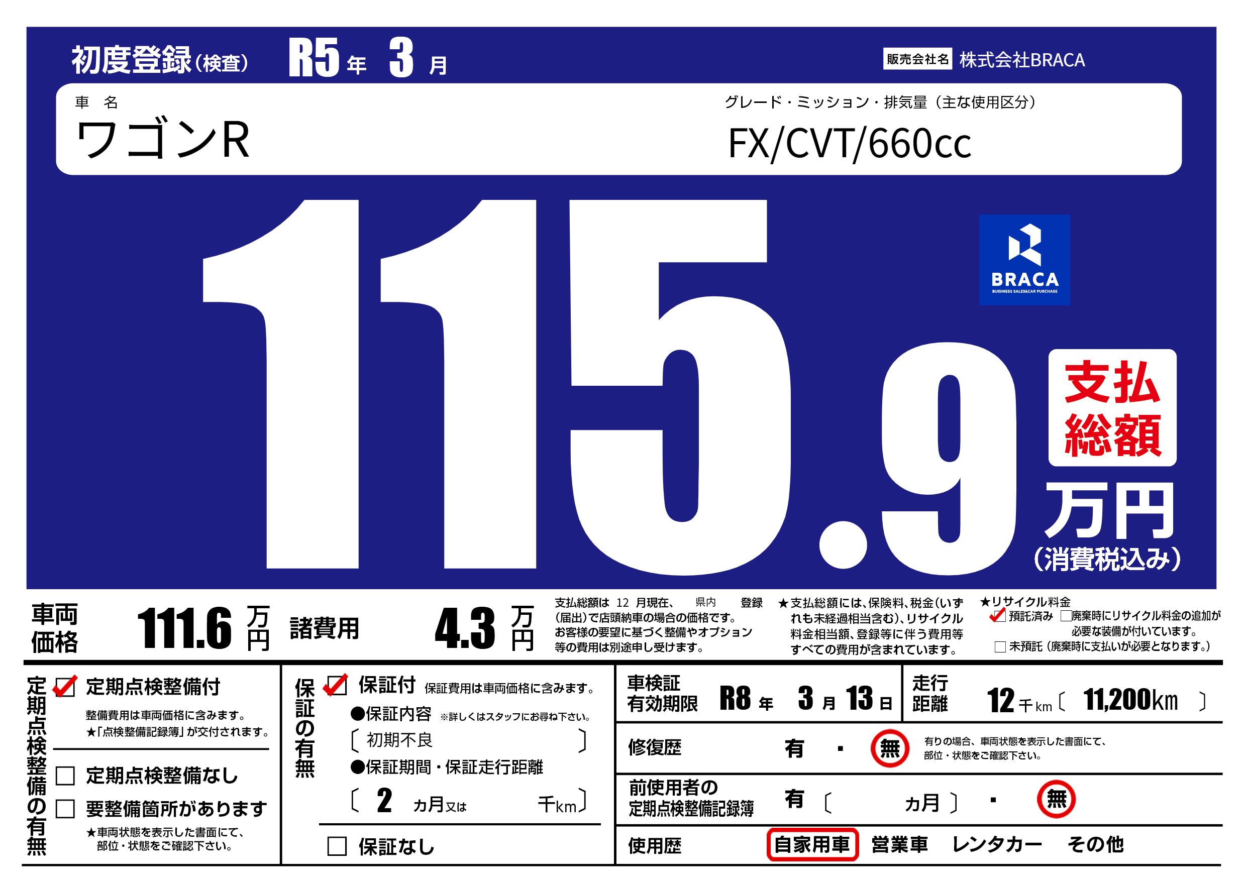 | 走行キロ | 1.2万km | 初年度登録 | R5年3月 |