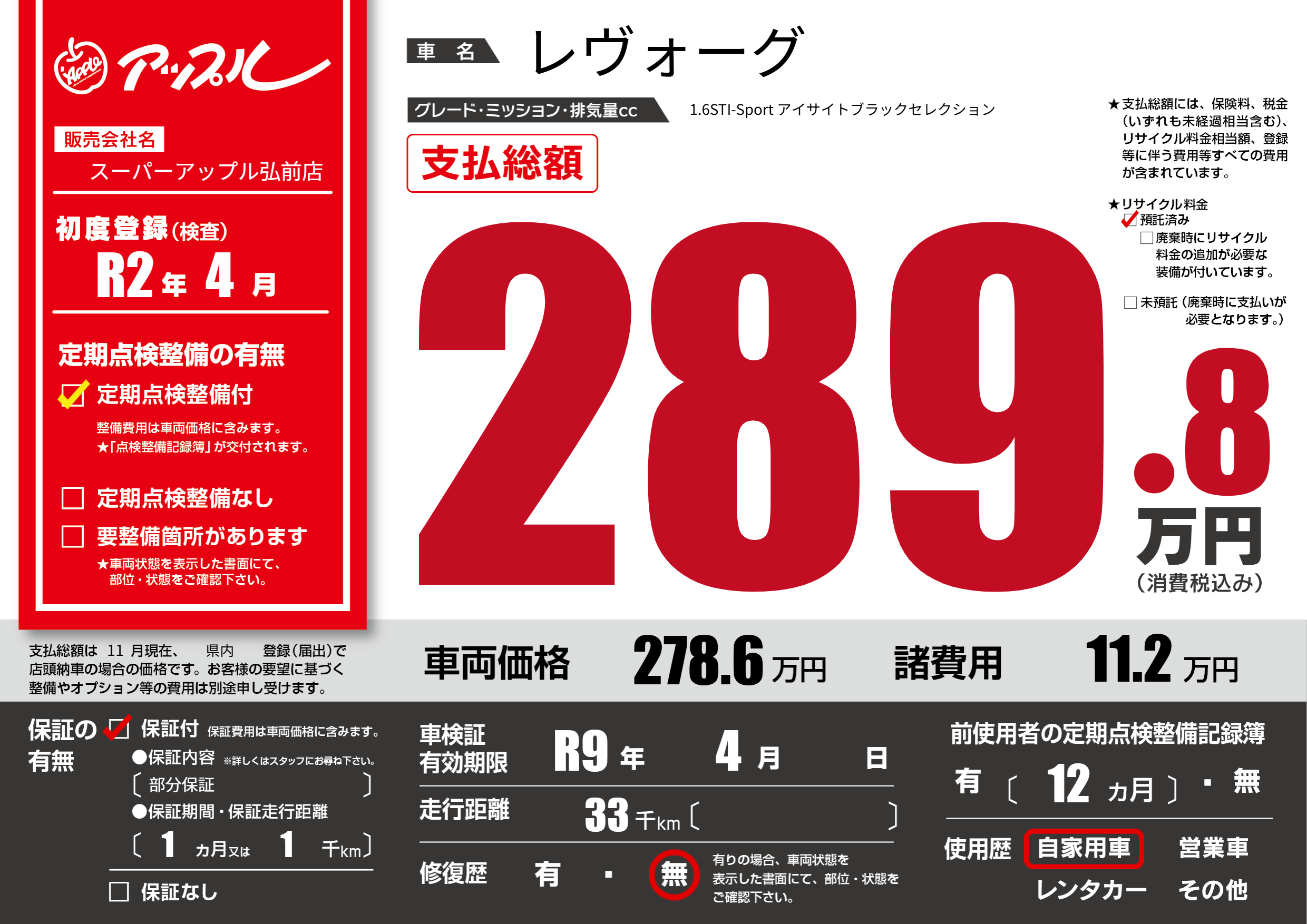 なし | 車検制限 | R9年4月---月 |