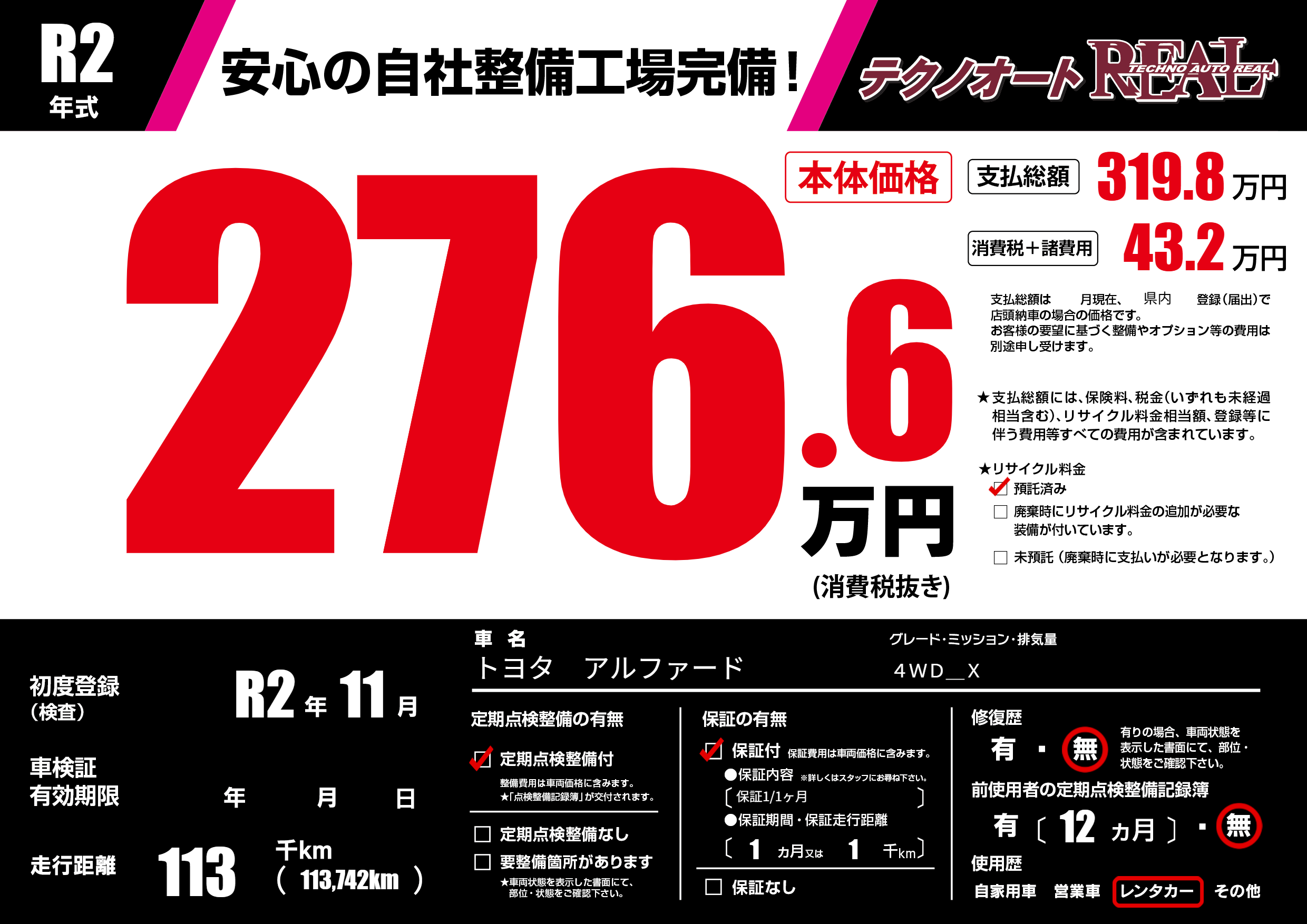 | 走行キロ | 11.3万km | 初年度登録 | R2年11月 |