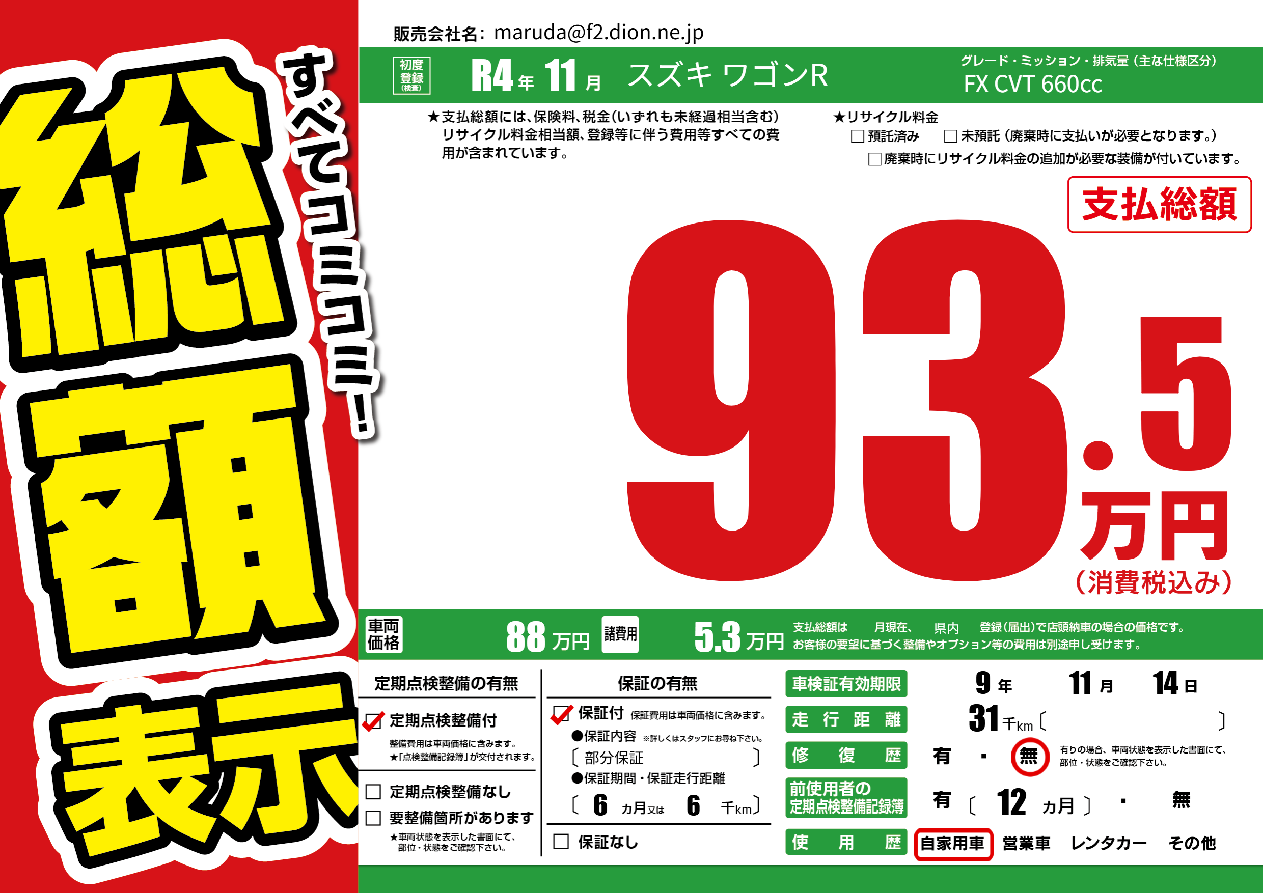 | 車検制限 | 9年 11月 14日 | ||