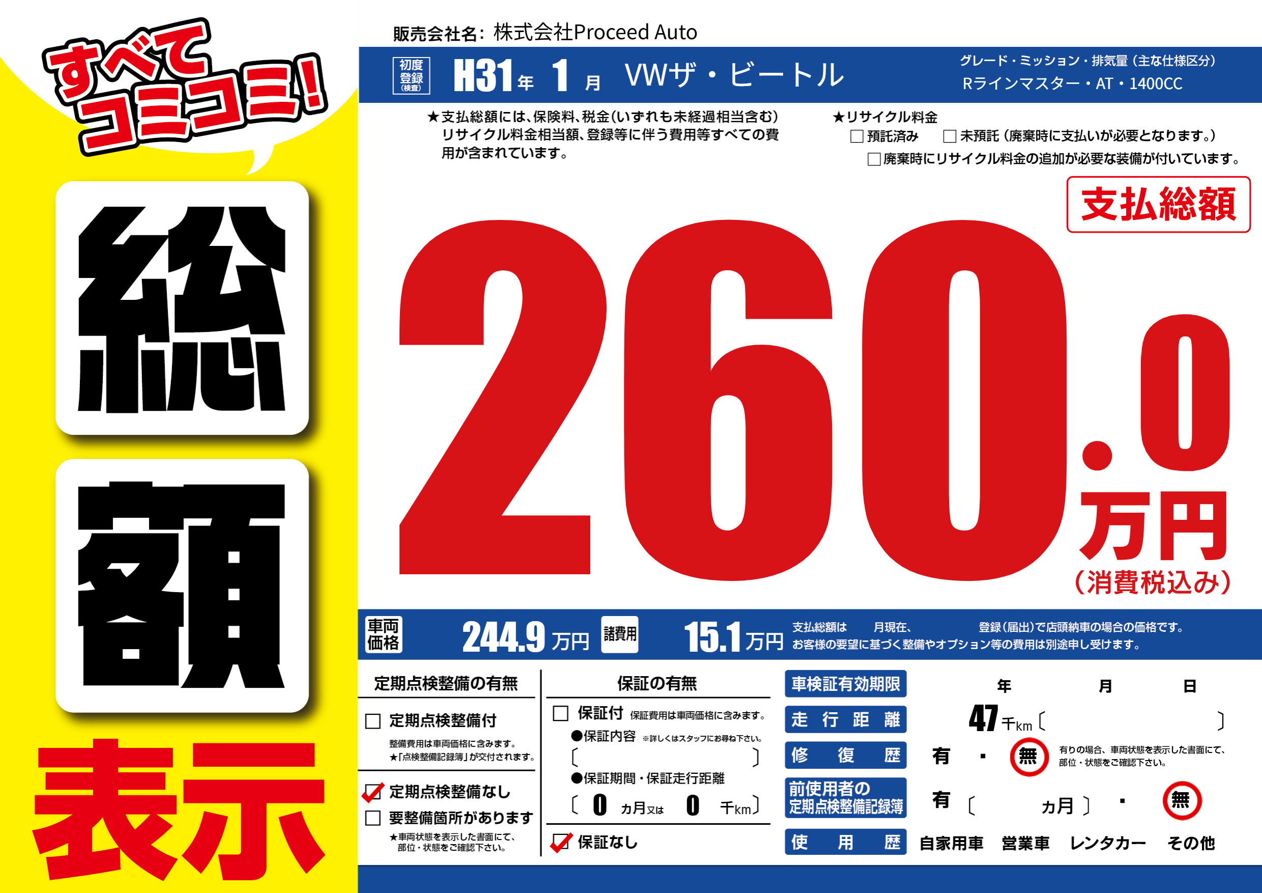 | 車名 | VWザ・ビートル | グレード ミッション 排気量 |