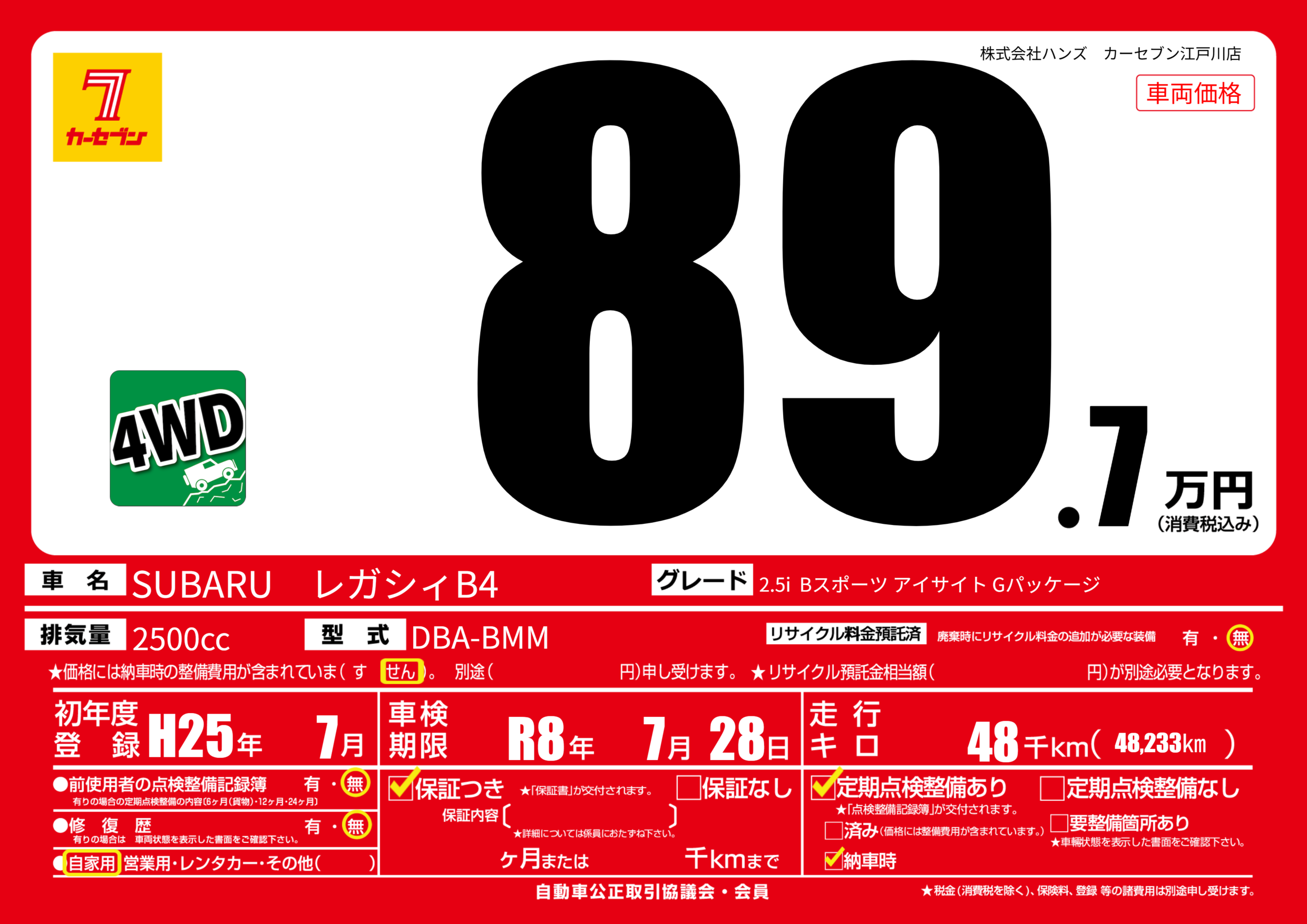 | 走行キロ | 4.8万km | ||
