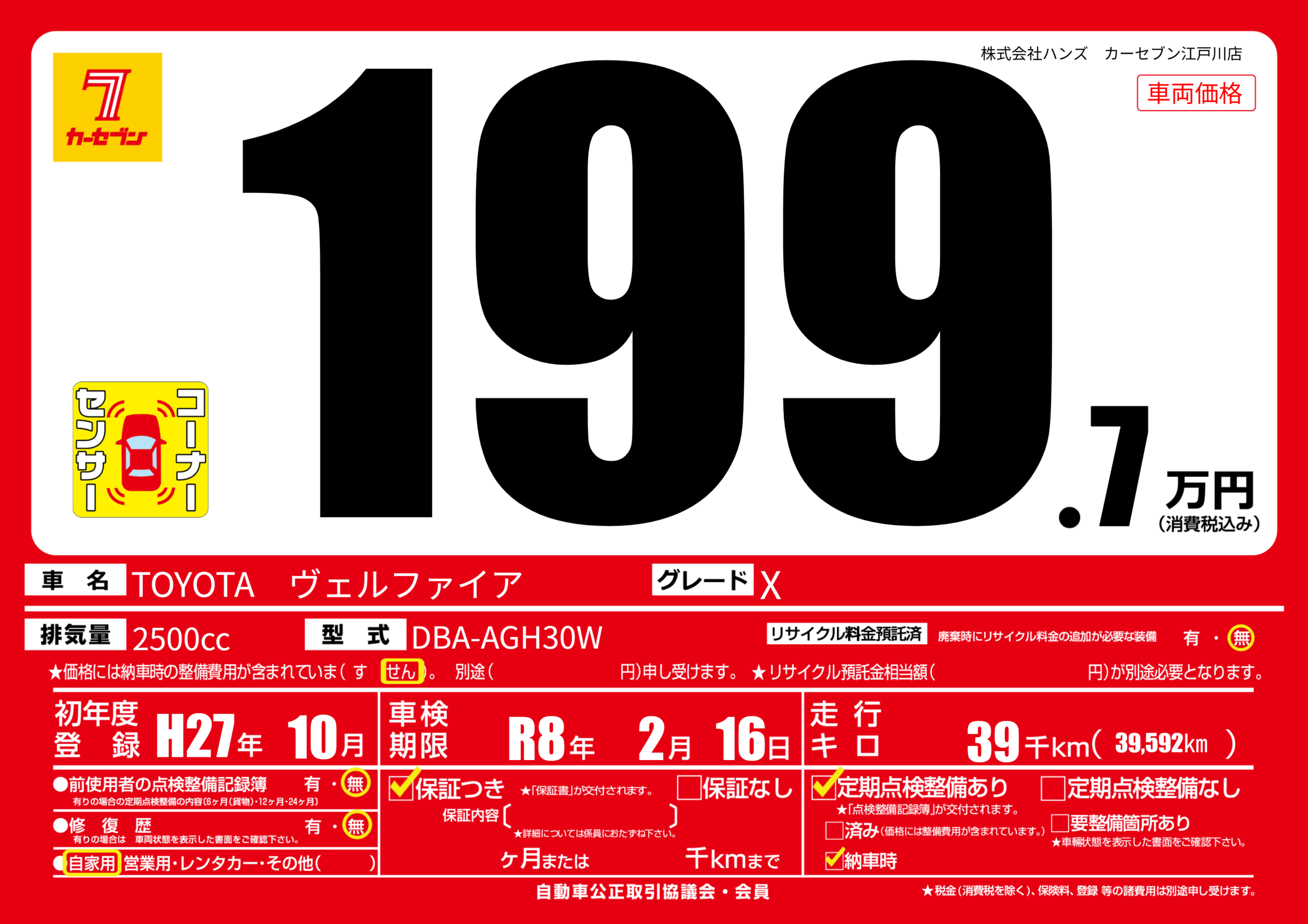 | 走行キロ | 3.9万km | ||