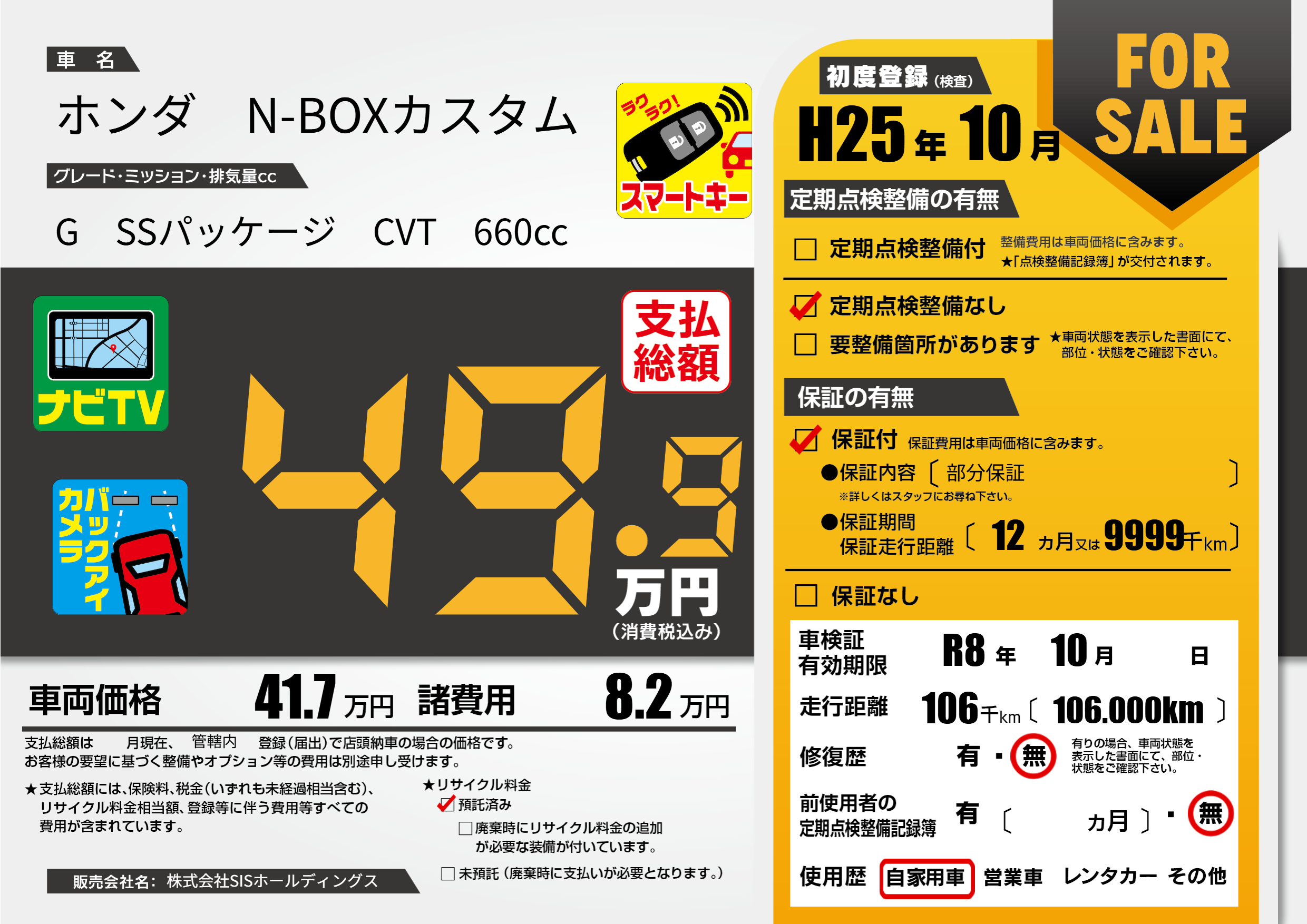 | 車検制限 | R8年 10月 - 日 | ||
