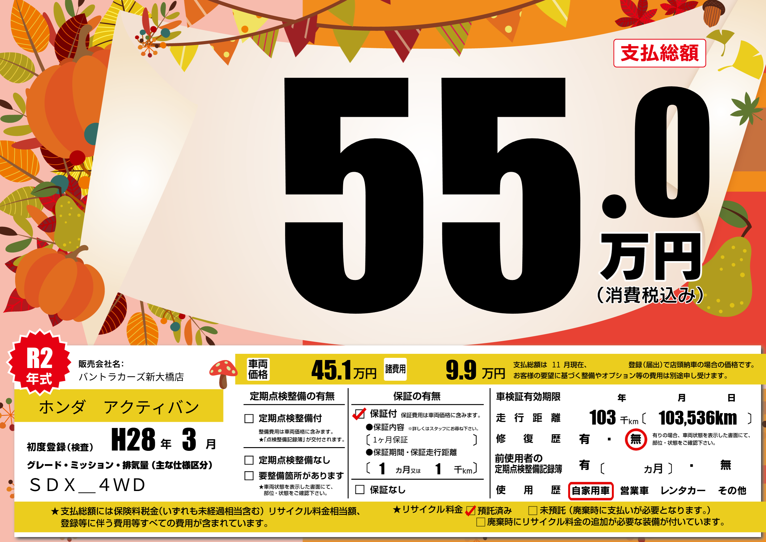 | 車名 | ホンダ アクティバン | グレード ミッション 排気量 |