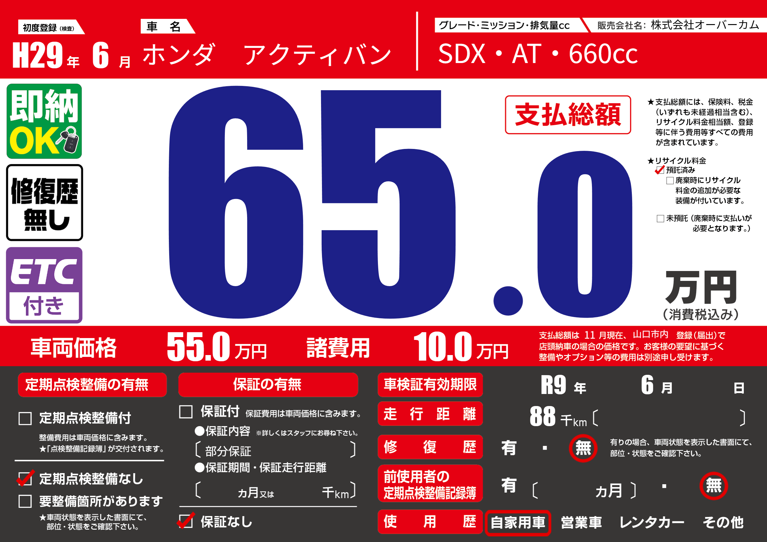 | 走行キロ | 8.8万km | 初年度登録 | H29年6月 |