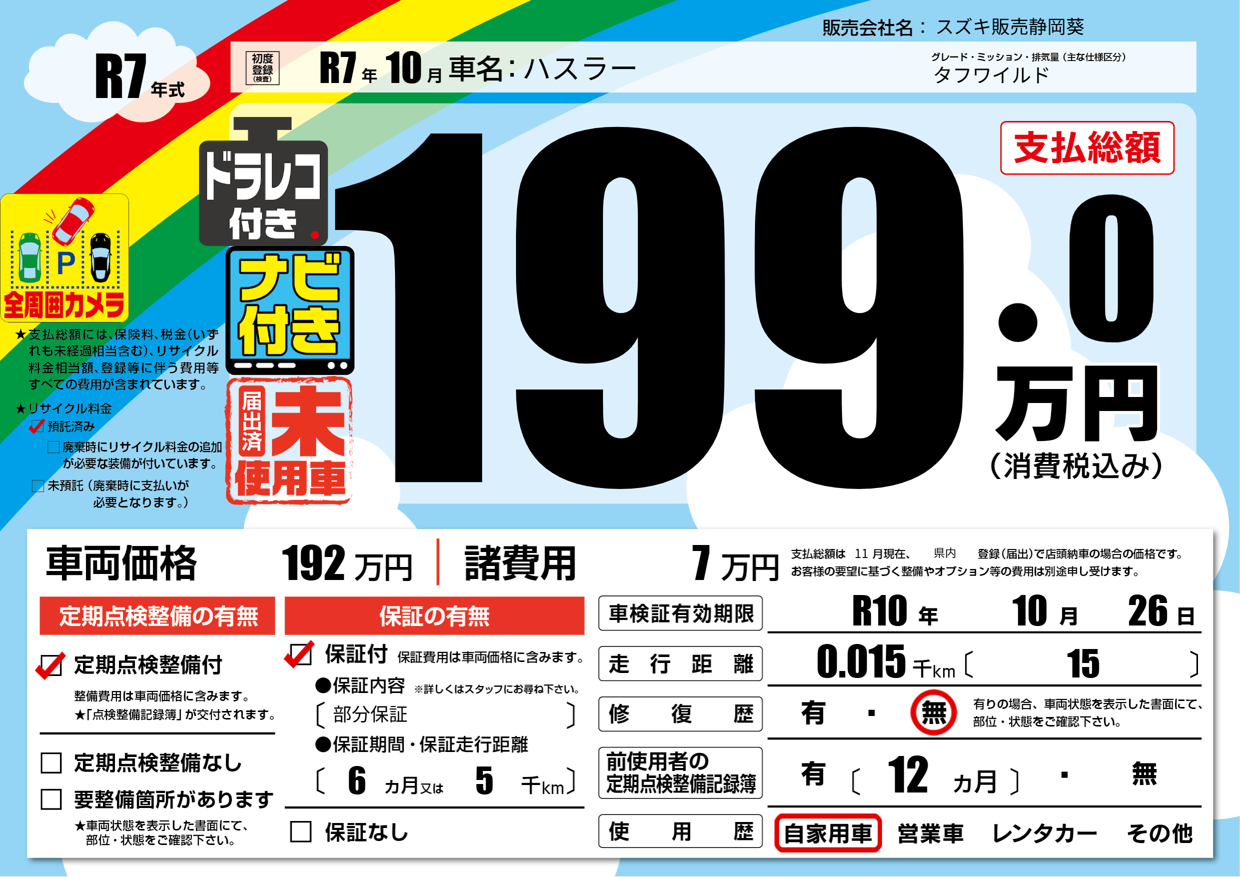 | 走行キロ | - | 初年度登録 | R7年10月 |