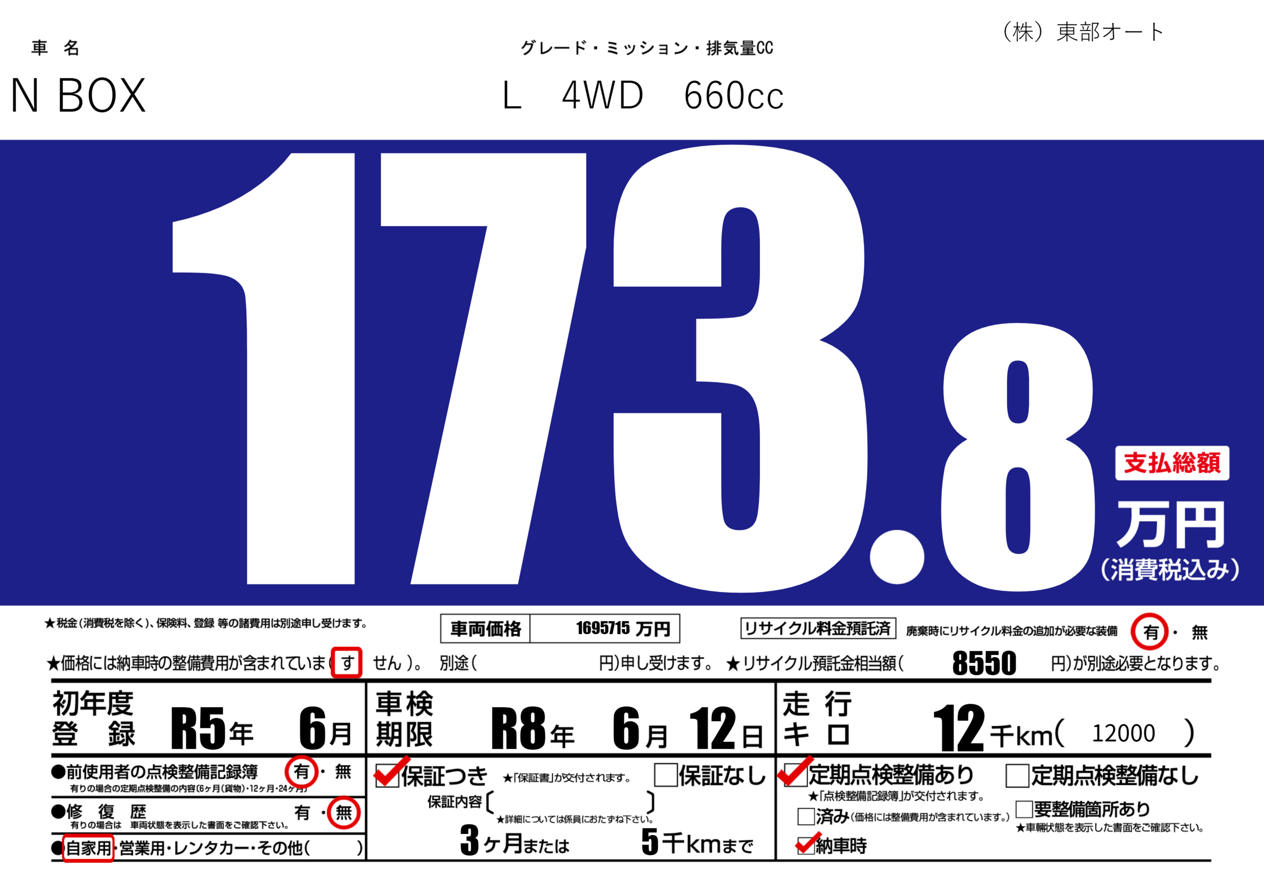| 車名 | N BOX | グレード ミッション 排気量 |