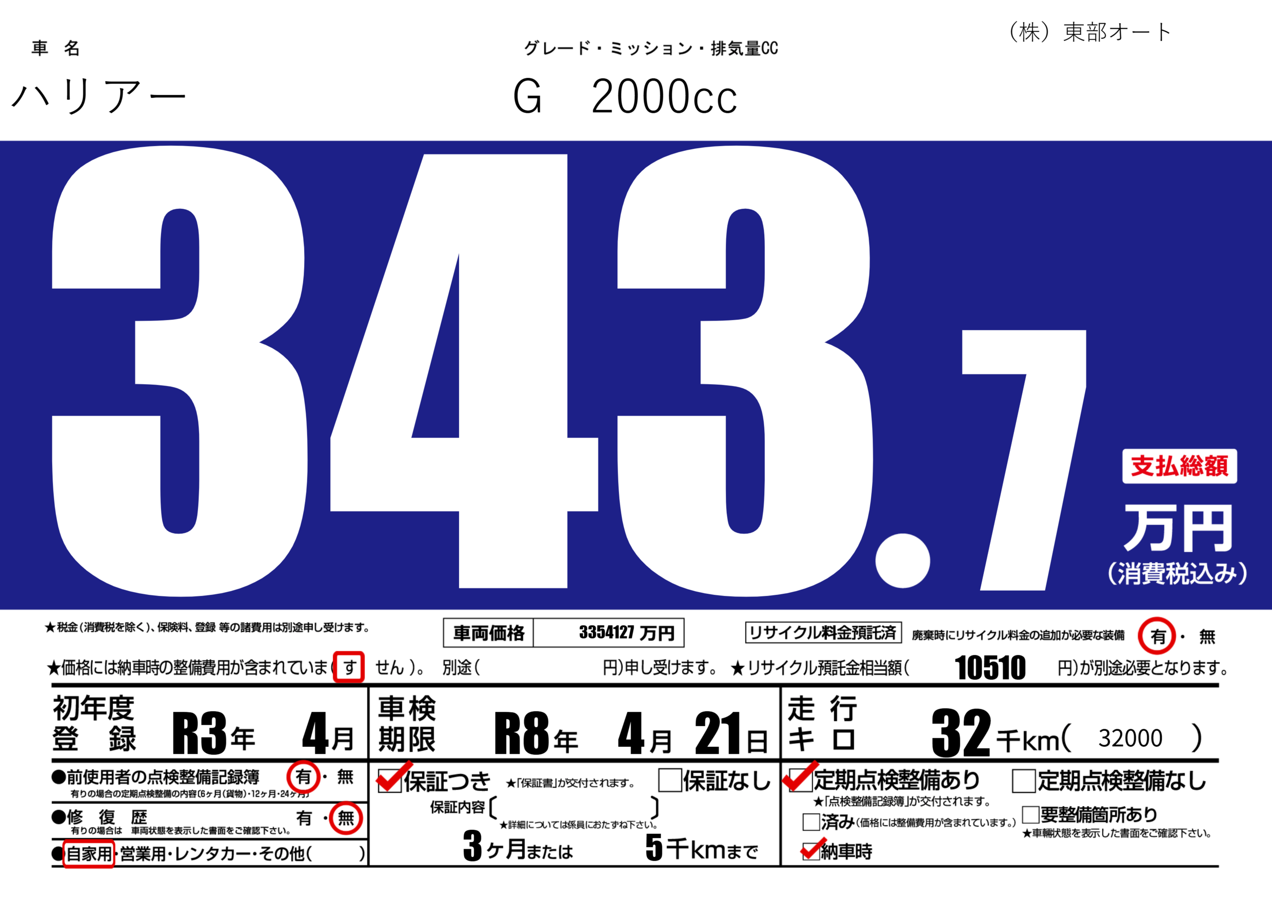 保証付き 保証内容(---) 3ヶ月または(5)千kmまで |