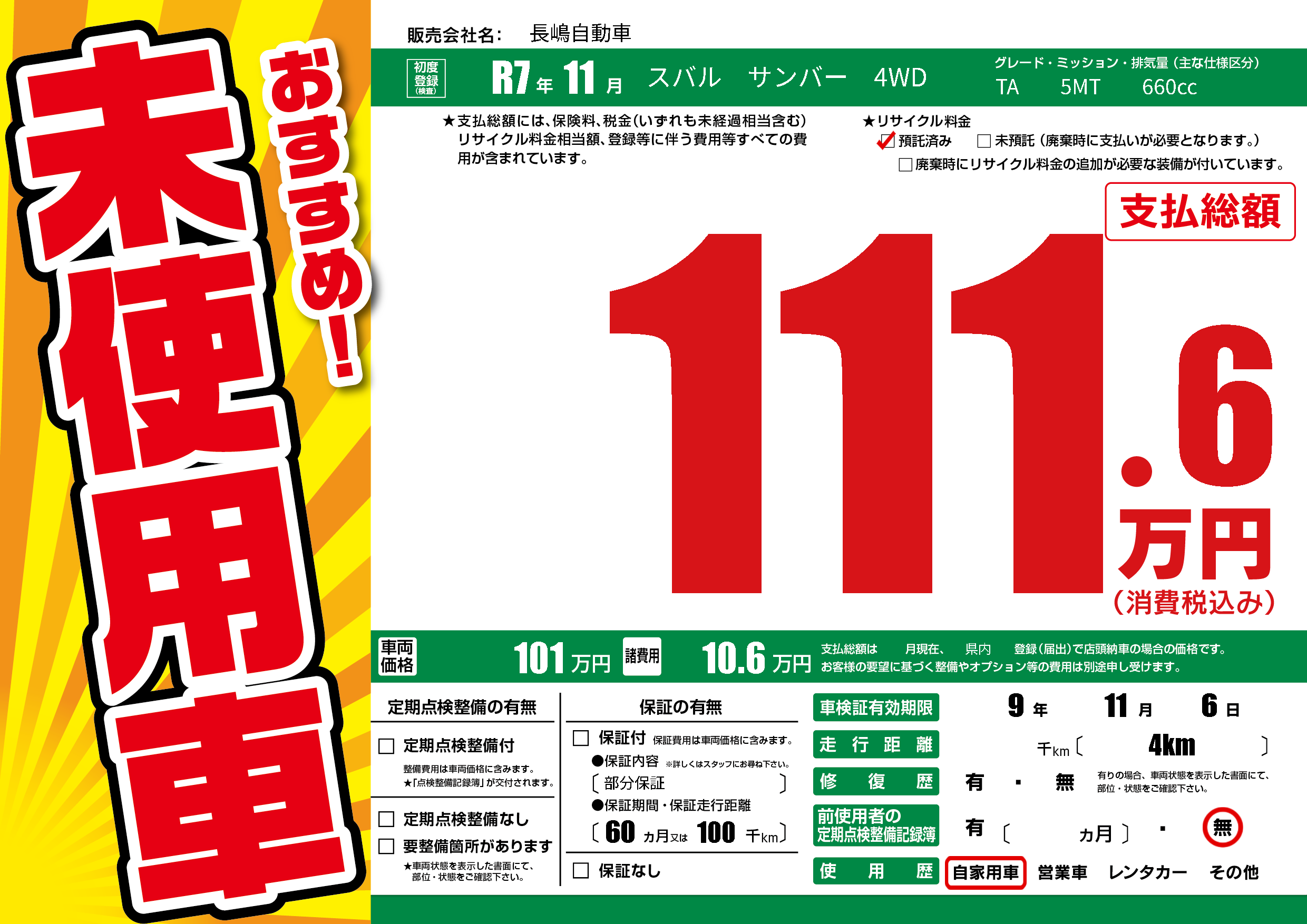 | 走行キロ | - | 初年度登録 | R7年11月 |